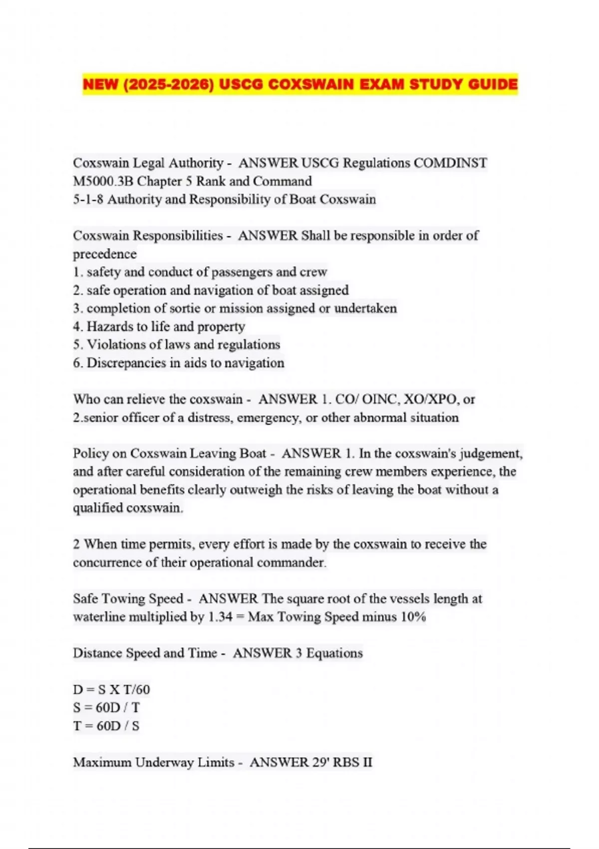 NEW () USCG COXSWAIN EXAM STUDY GUIDE...