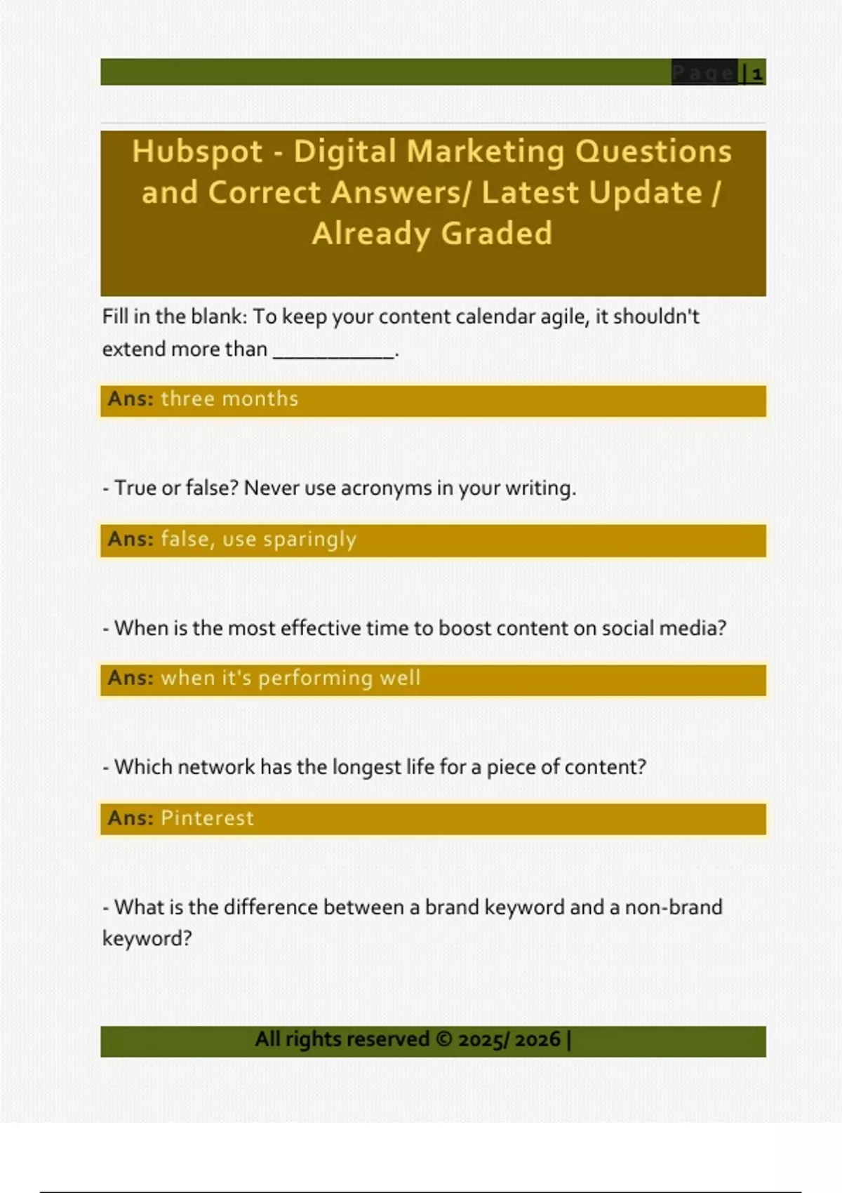 Hubspot - Digital Marketing Questions