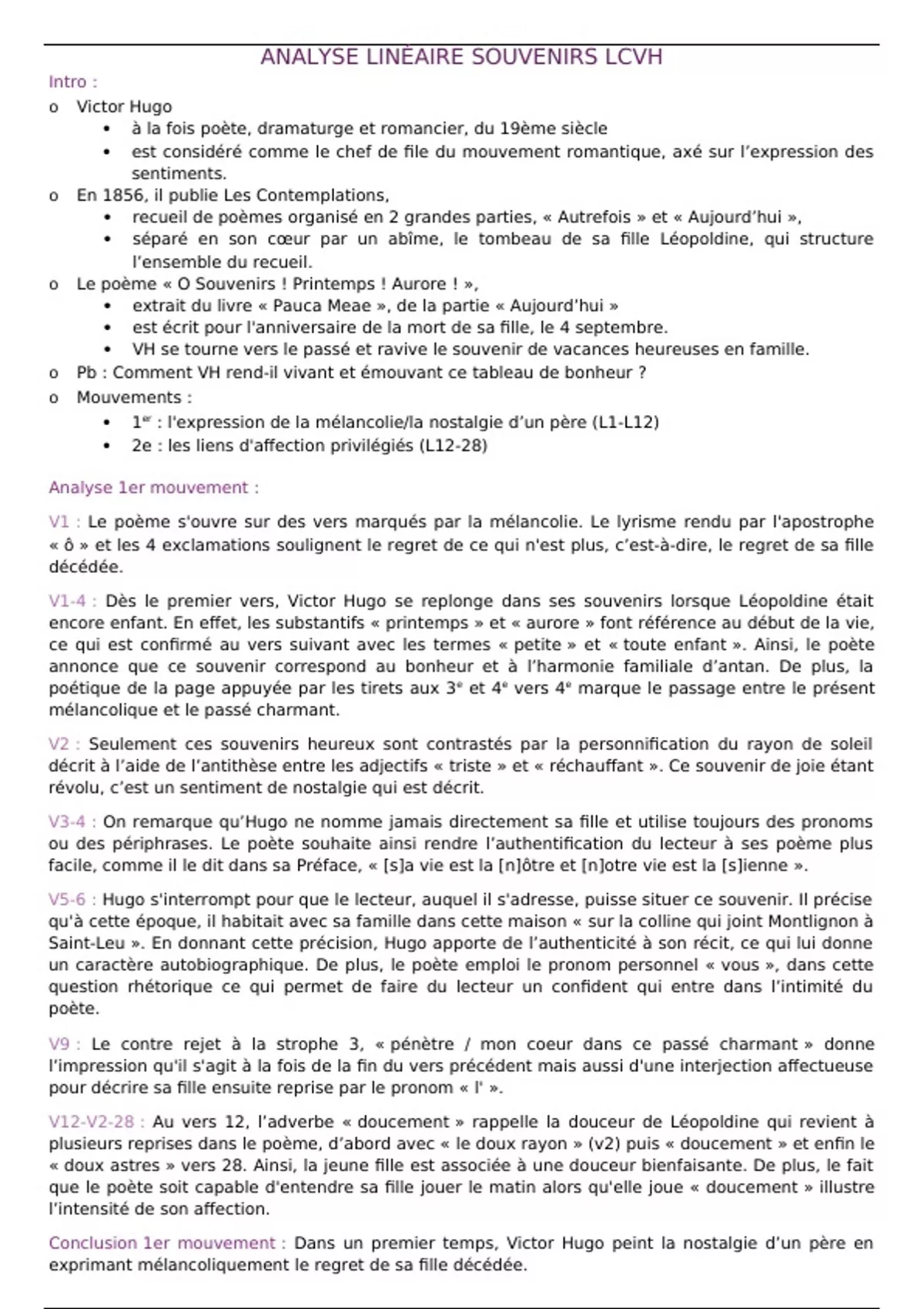 ANALYSE LINÉAIRE SOUVENIRS LCVH