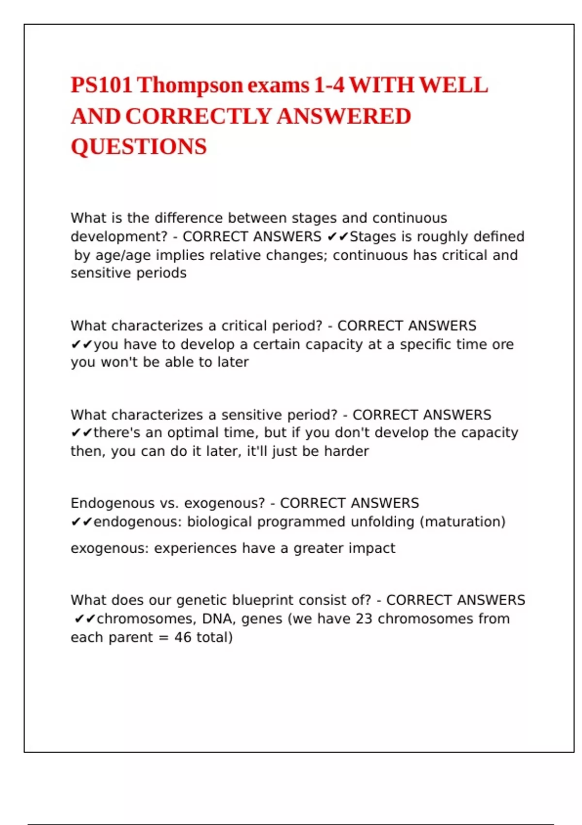 PS101 Thompson exams 1-4 WITH WELL AND CORRECTLY ANSWERED QUESTIONS
