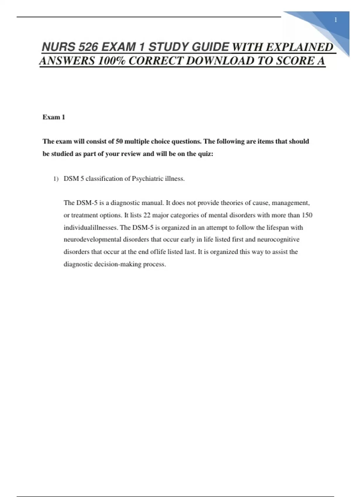 NURS 526 EXAM 1 STUDY GUIDE WITH EXPLAINED