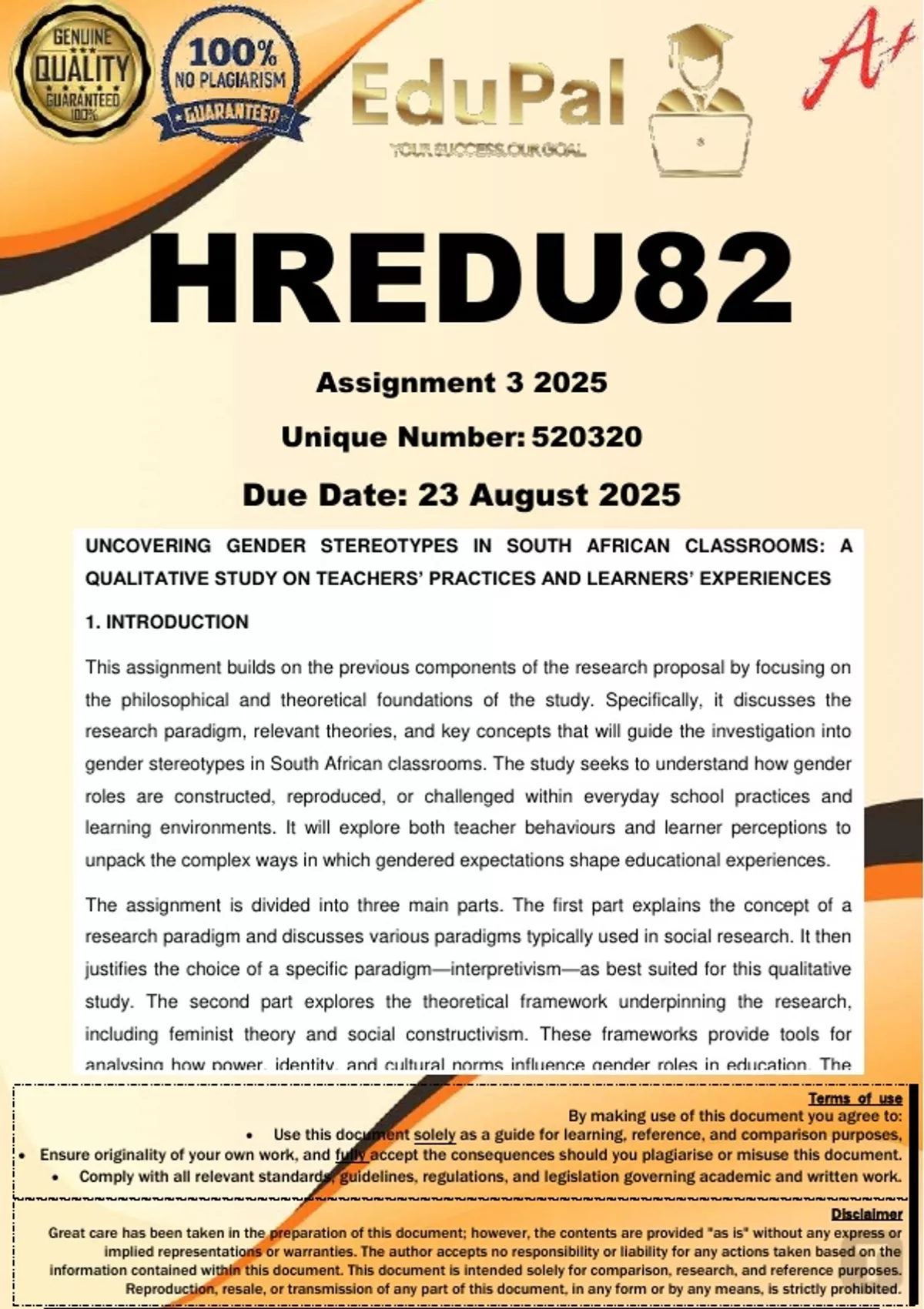 HREDU82 Assignment 3 (COMPLETE ANSWERS) 2025 (520320) - DUE 23 August 2025
