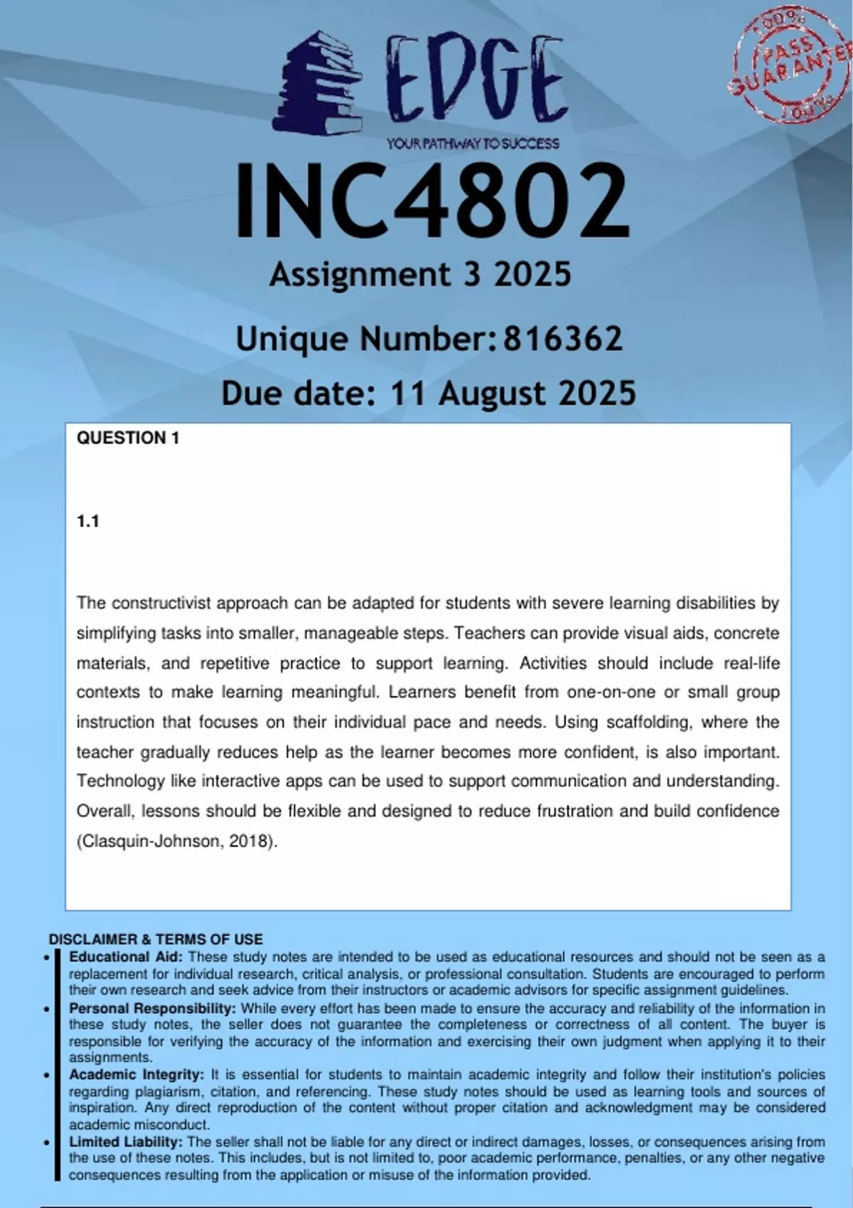 INC4802 Assignment 3 (ANSWERS) 2025 - DISTINCTION GUARANTEED