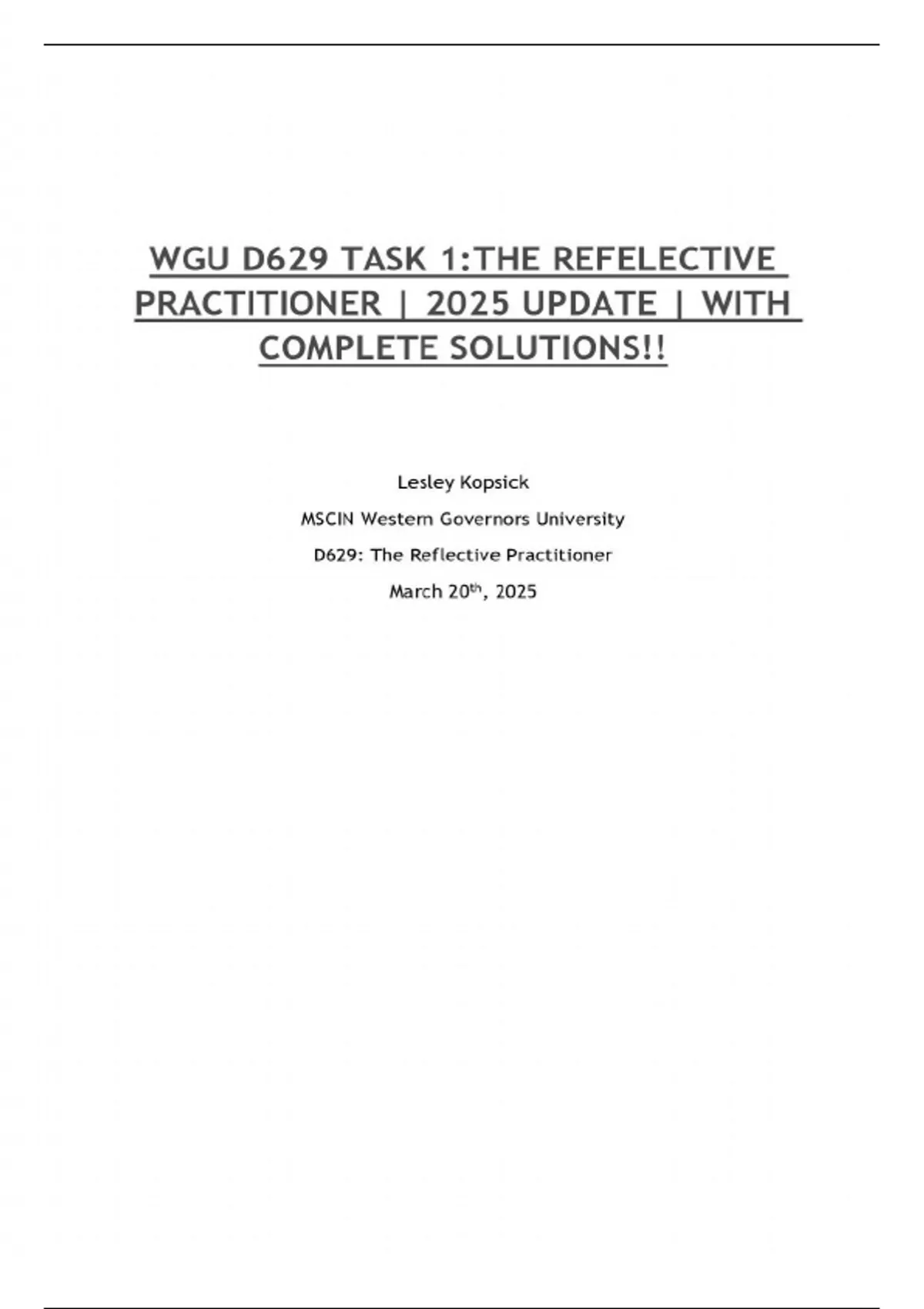 WGU D629 TASK 1:THE REFELECTIVE PRACTITIONER | 2025 UPDATE | WITH COMPLETE SOLUTIONS!!