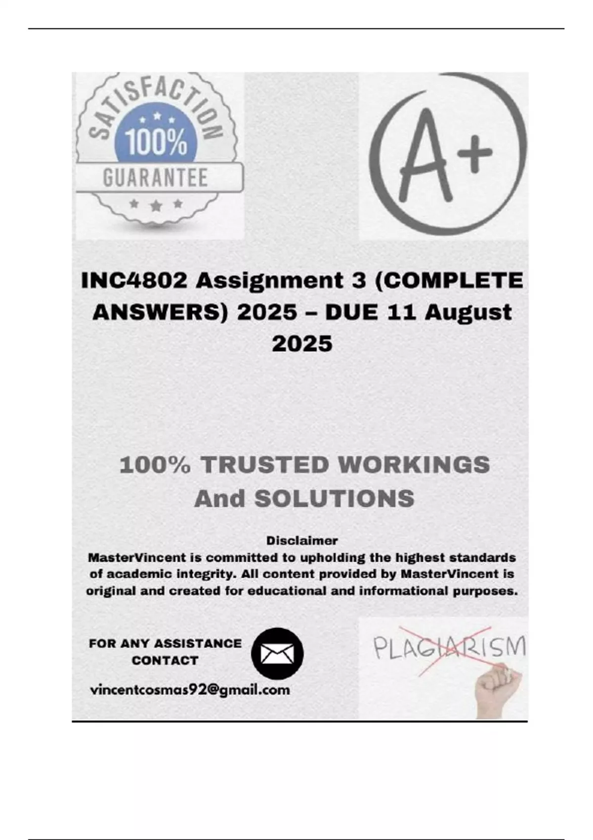 INC4802 Assignment 3 (COMPLETE ANSWERS) 2025 – DUE 11 August 2025; 100% correct solutions and explanations.