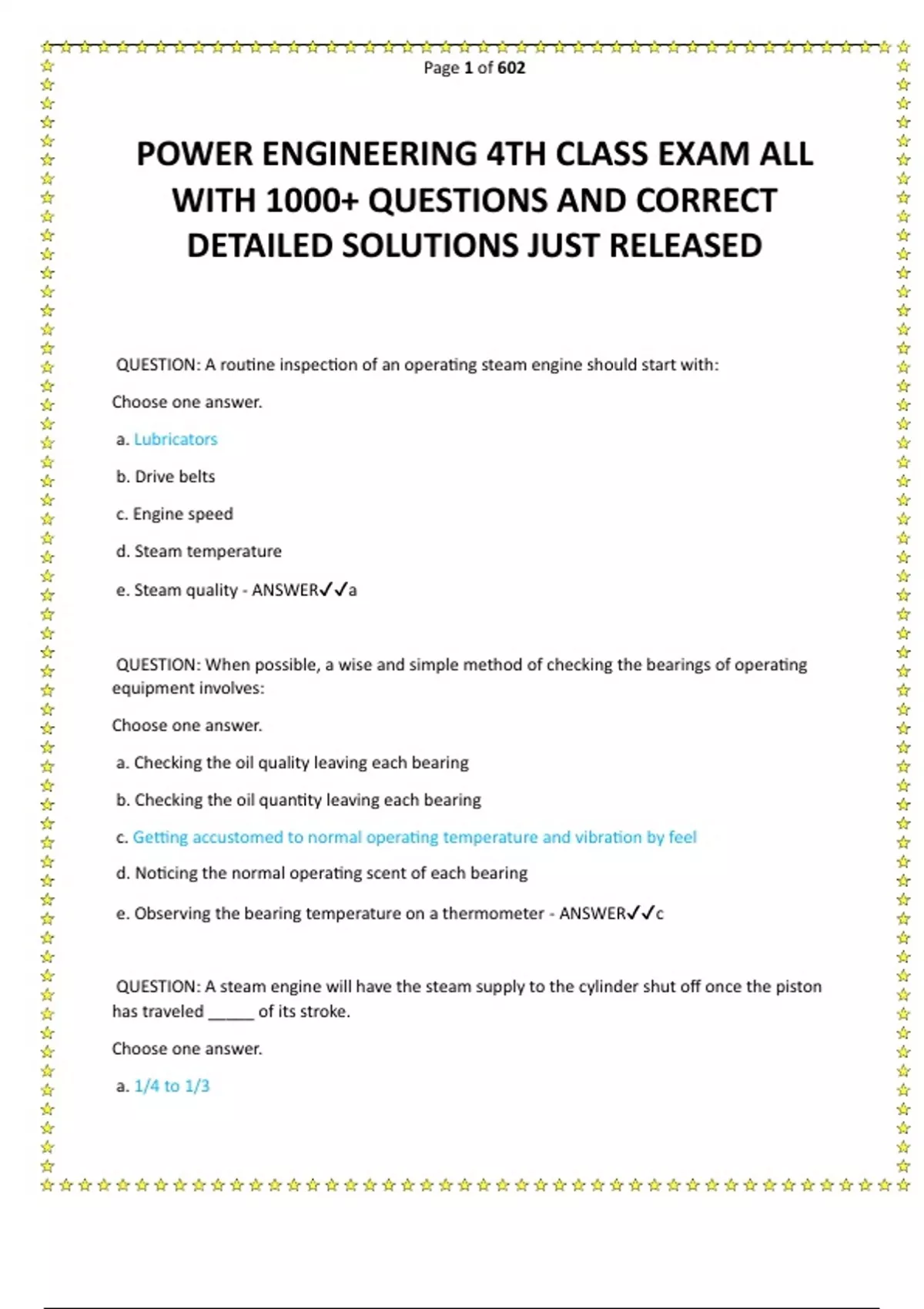 POWER ENGINEERING 4TH CLASS EXAM ALL WITH 1000+ QUESTIONS AND CORRECT DETAILED SOLUTIONS JUST RELEASED