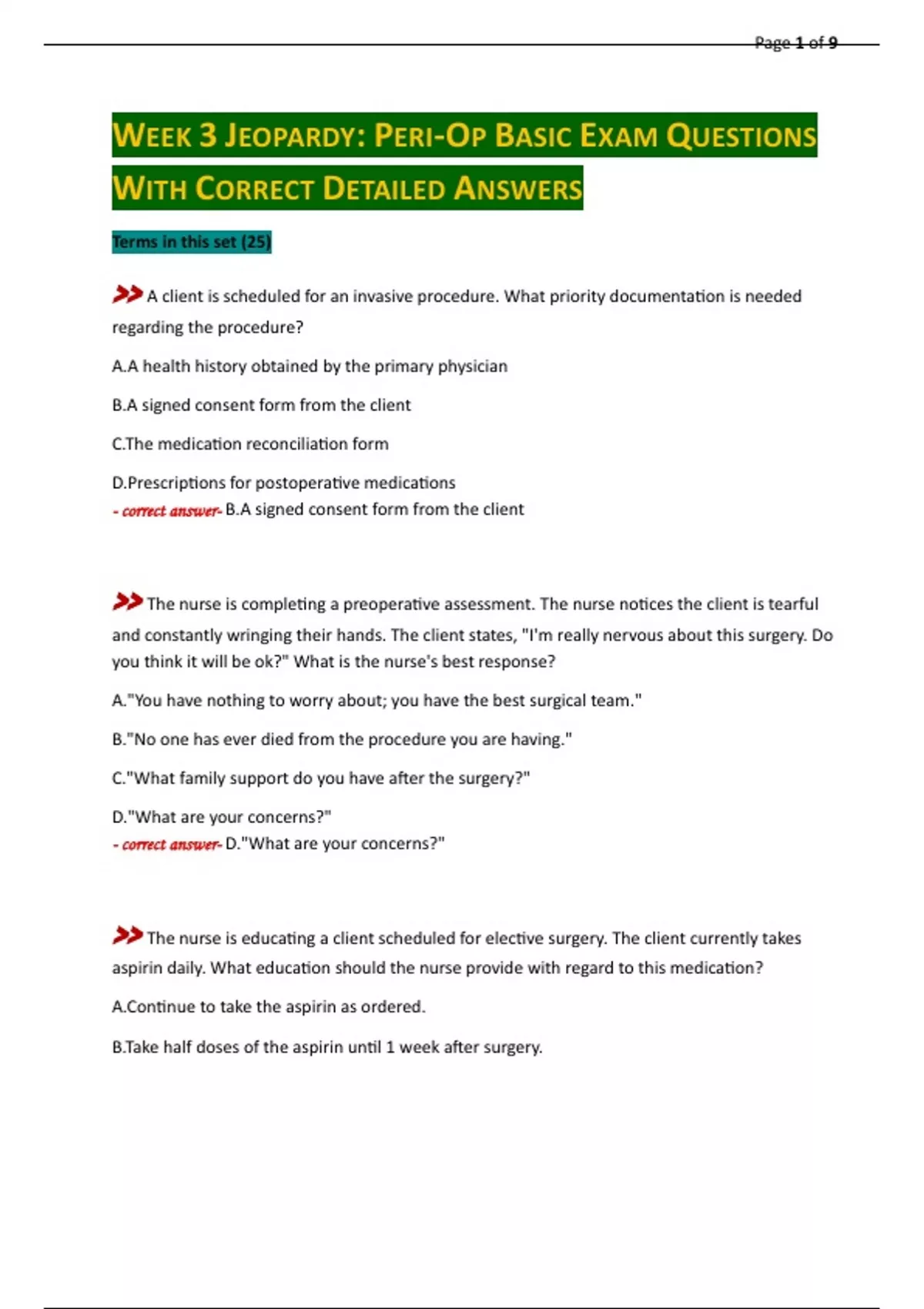 WEEK 3 JEOPARDY: PERI-OP BASIC EXAM QUESTIONS