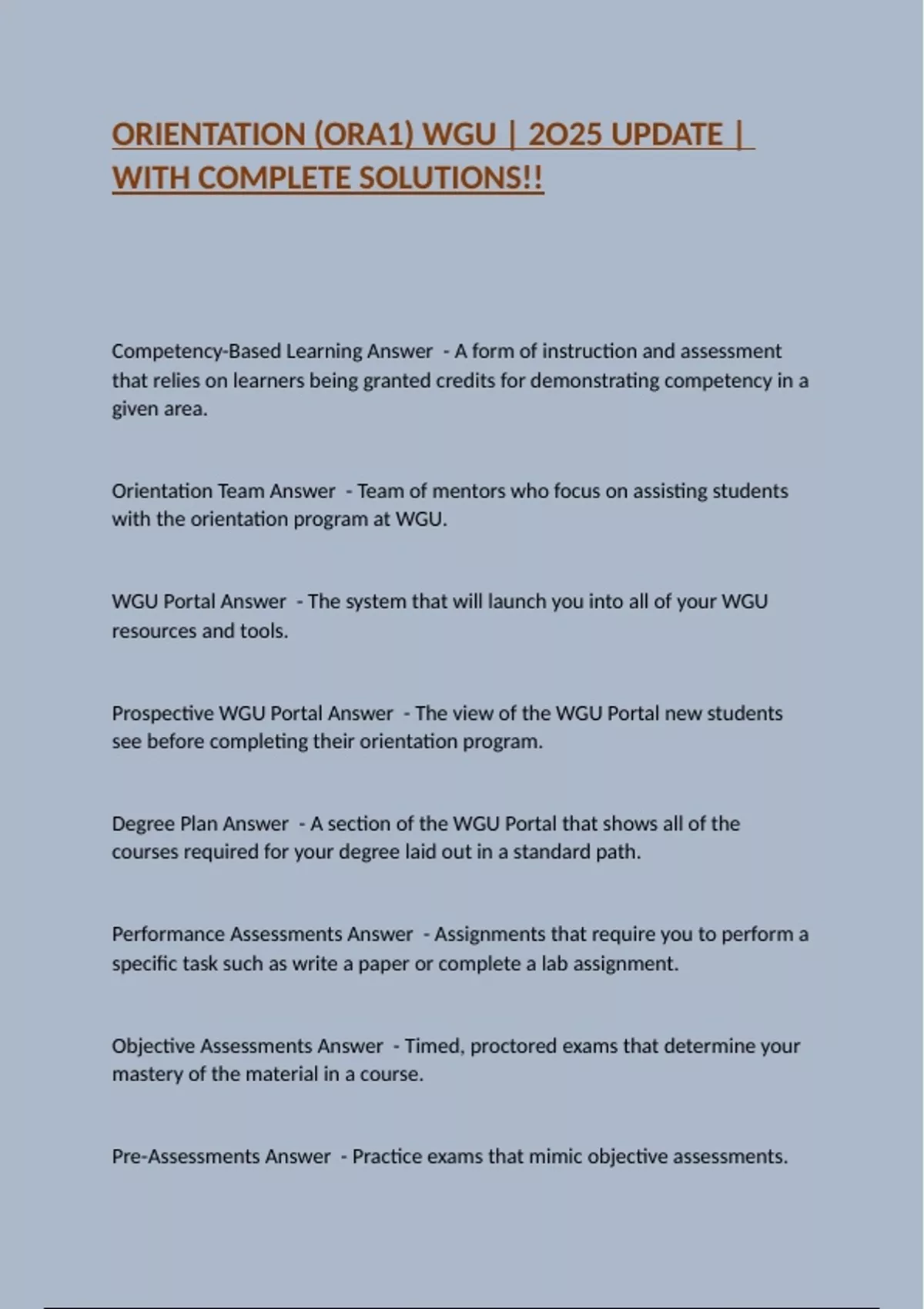 ORIENTATION (ORA1) WGU | 2O25 UPDATE | WITH COMPLETE SOLUTIONS!!