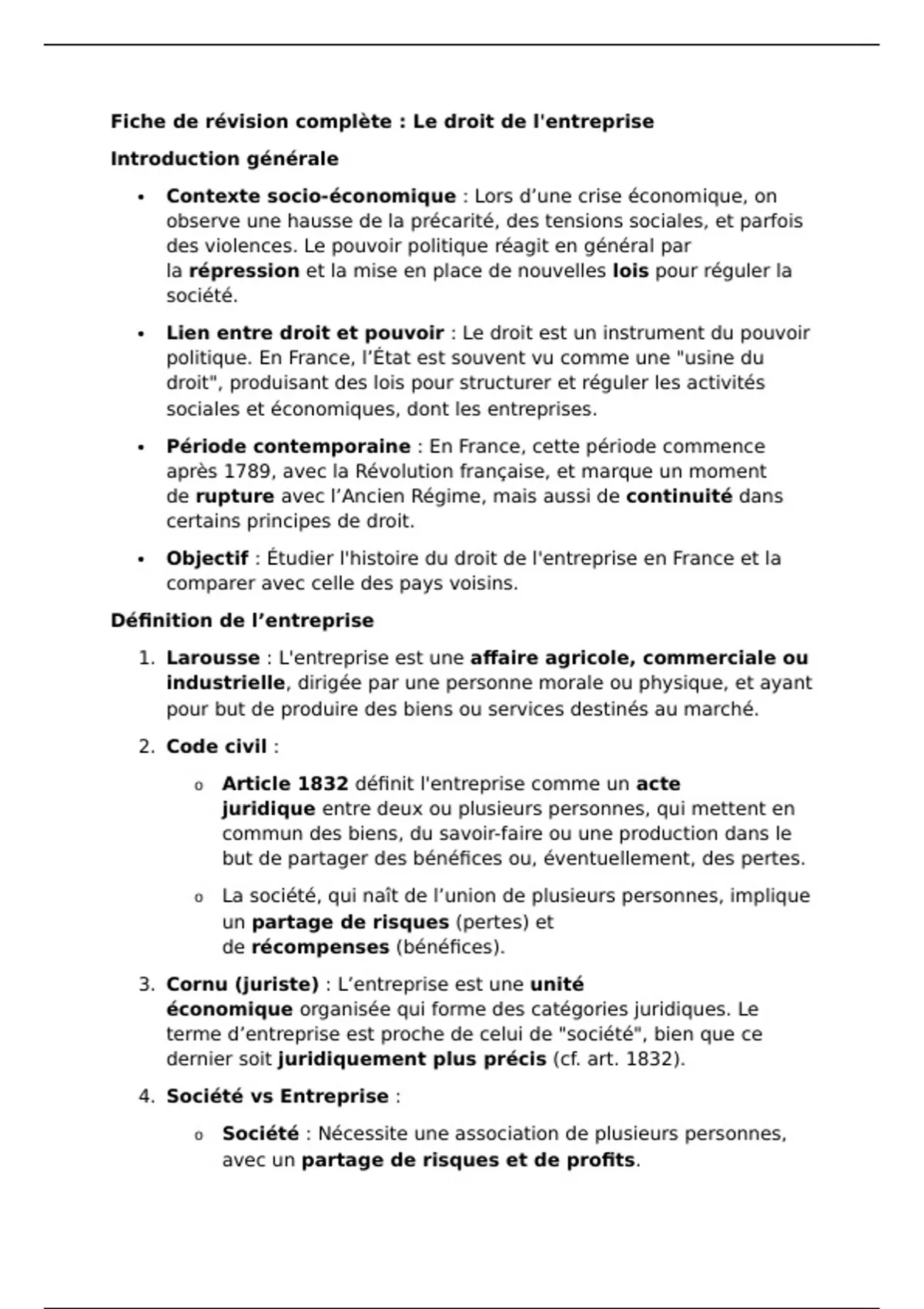 Objectif : Étudier l'histoire du droit de l'entreprise en France et la