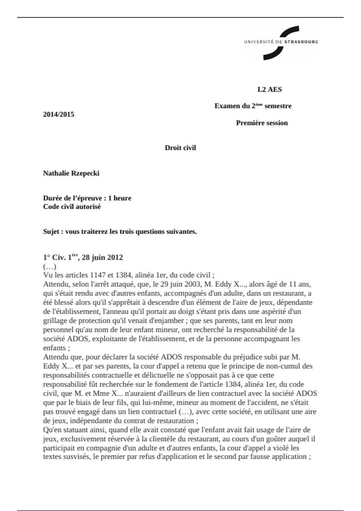Sujet : vous traiterez les trois questions suivantes.
