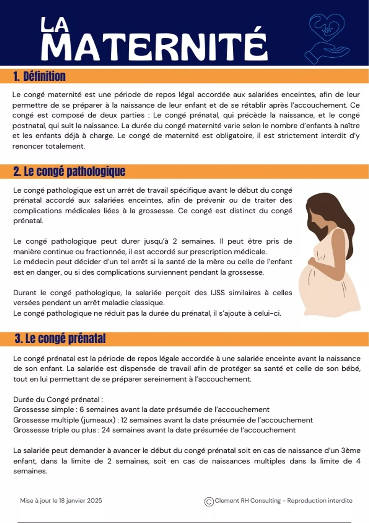 Le congé maternité est une période de repos légal accordée aux salariées enceintes, afin de leur