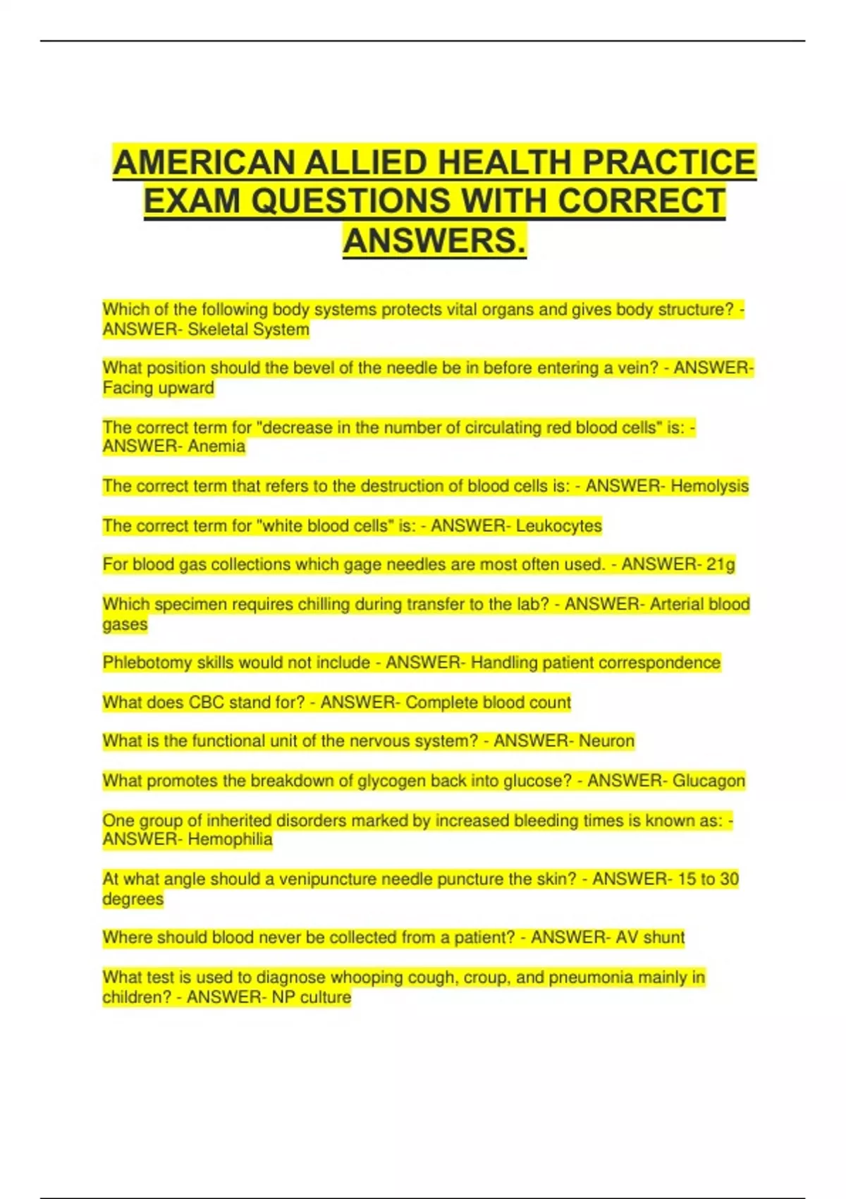 EXAM QUESTIONS WITH CORRECT