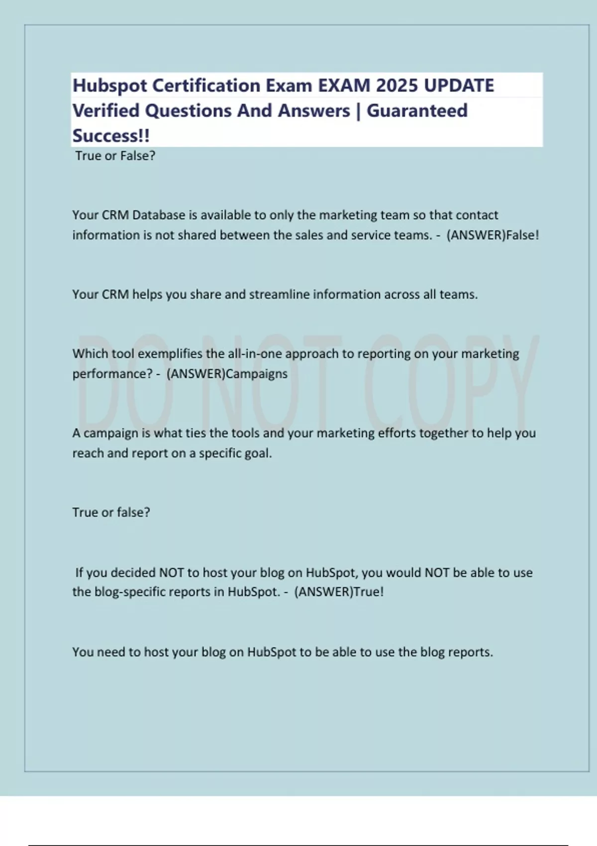 Hubspot Certification Exam EXAM 2025 UPDATE