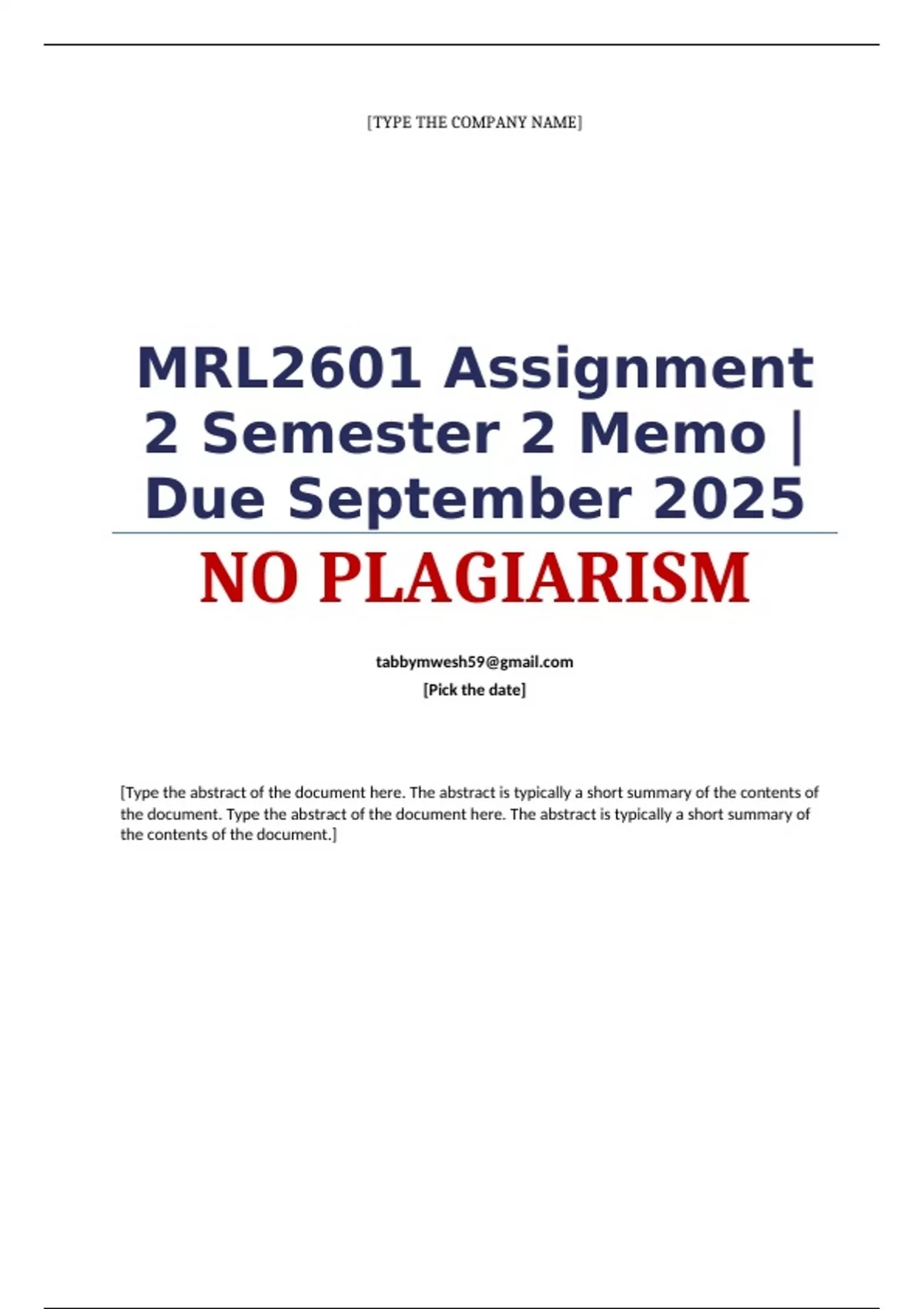 MRL2601 Assignment 2 Semester 2 Memo | Due September 2025. All