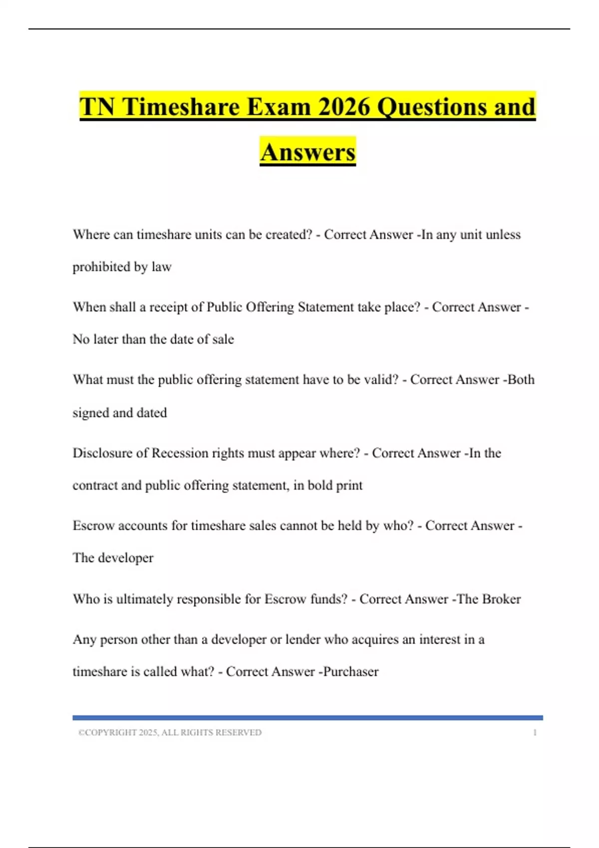 Escrow accounts for timeshare sales cannot be held by who? - Correct Answer -
