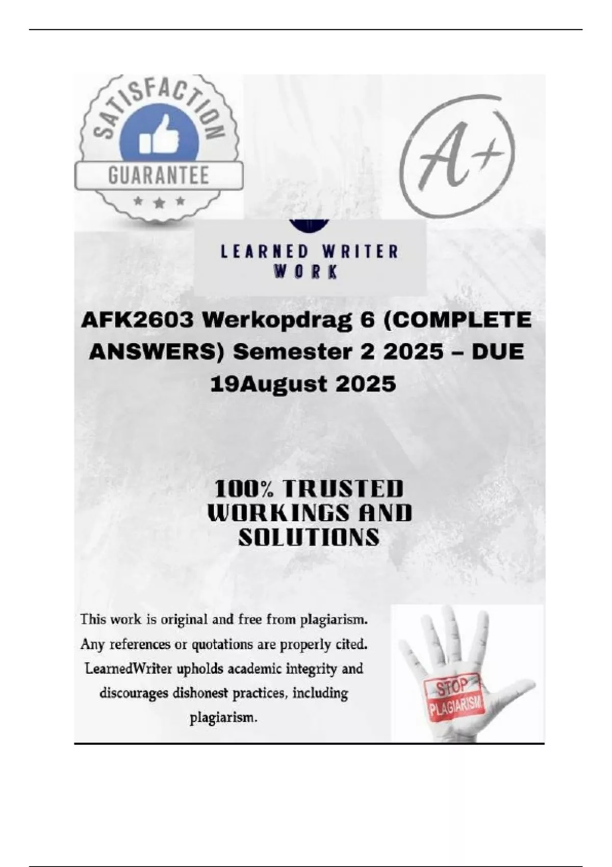 AFK2603 Werkopdrag 6 (COMPLETE ANSWERS) Semester 2 2025 – DUE 19August 2025 ;100% trusted ,comprehensive and complete reliable solution with clear explanation