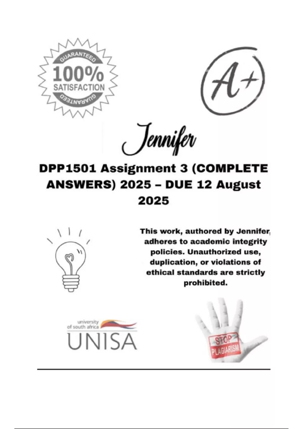 DPP1501 Assignment 3 (COMPLETE ANSWERS) 2025 – DUE 12 August 2025; 100% correct solutions and explanations.