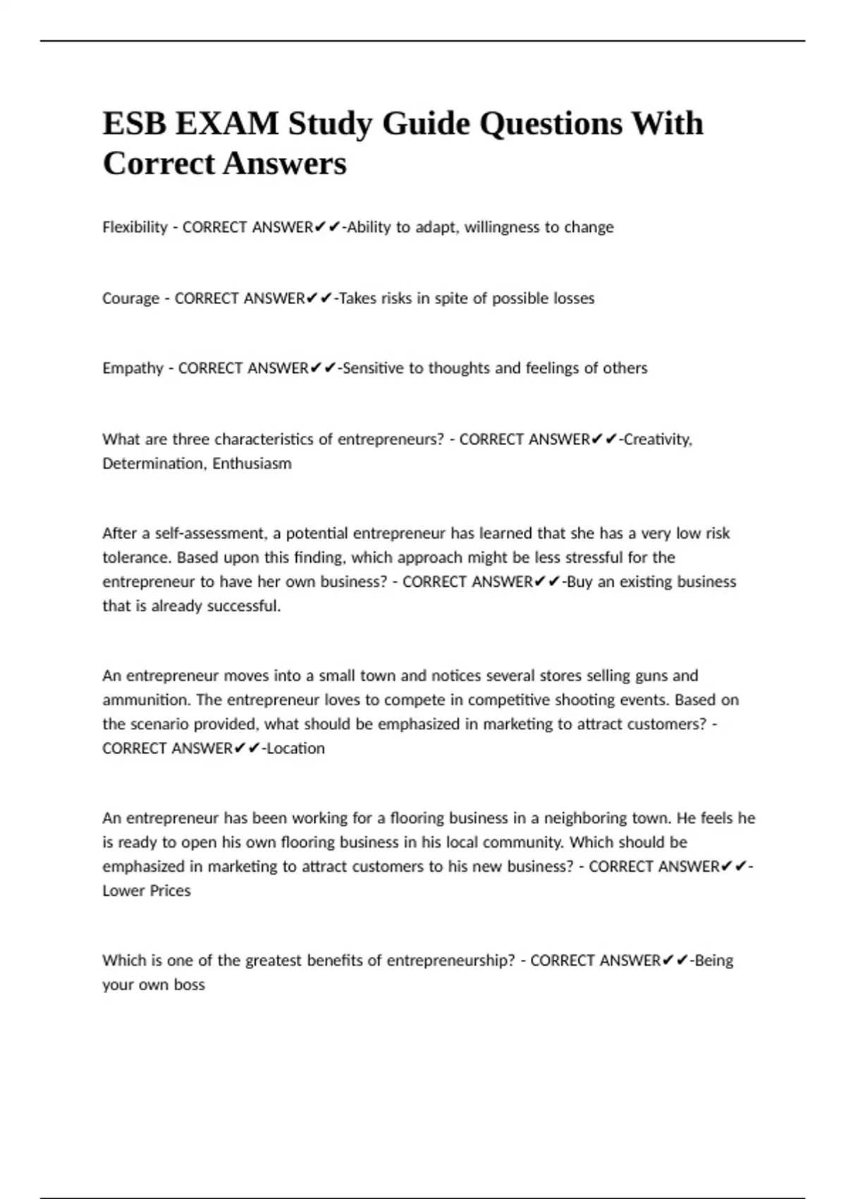 ESB EXAM Study Guide Questions With