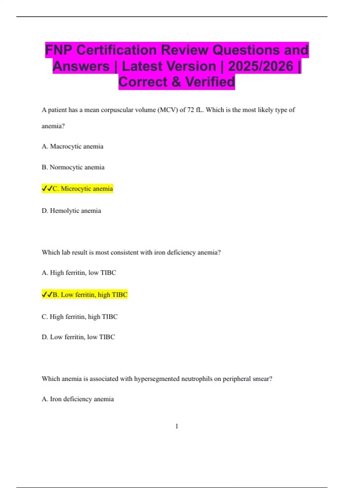 ✔✔C. Megaloblastic anemia