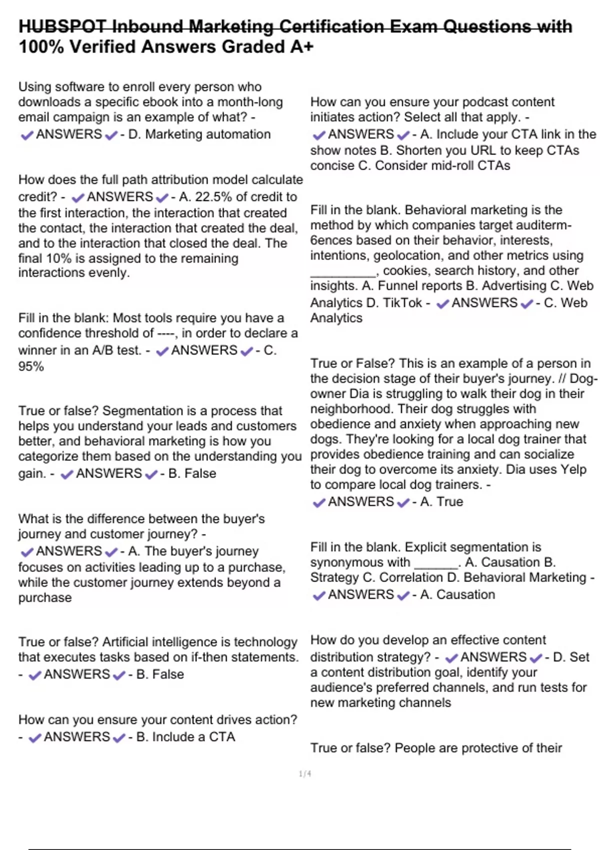 HUBSPOT Inbound Marketing Certification Exam Questions with 100% Verified Answers Graded A+