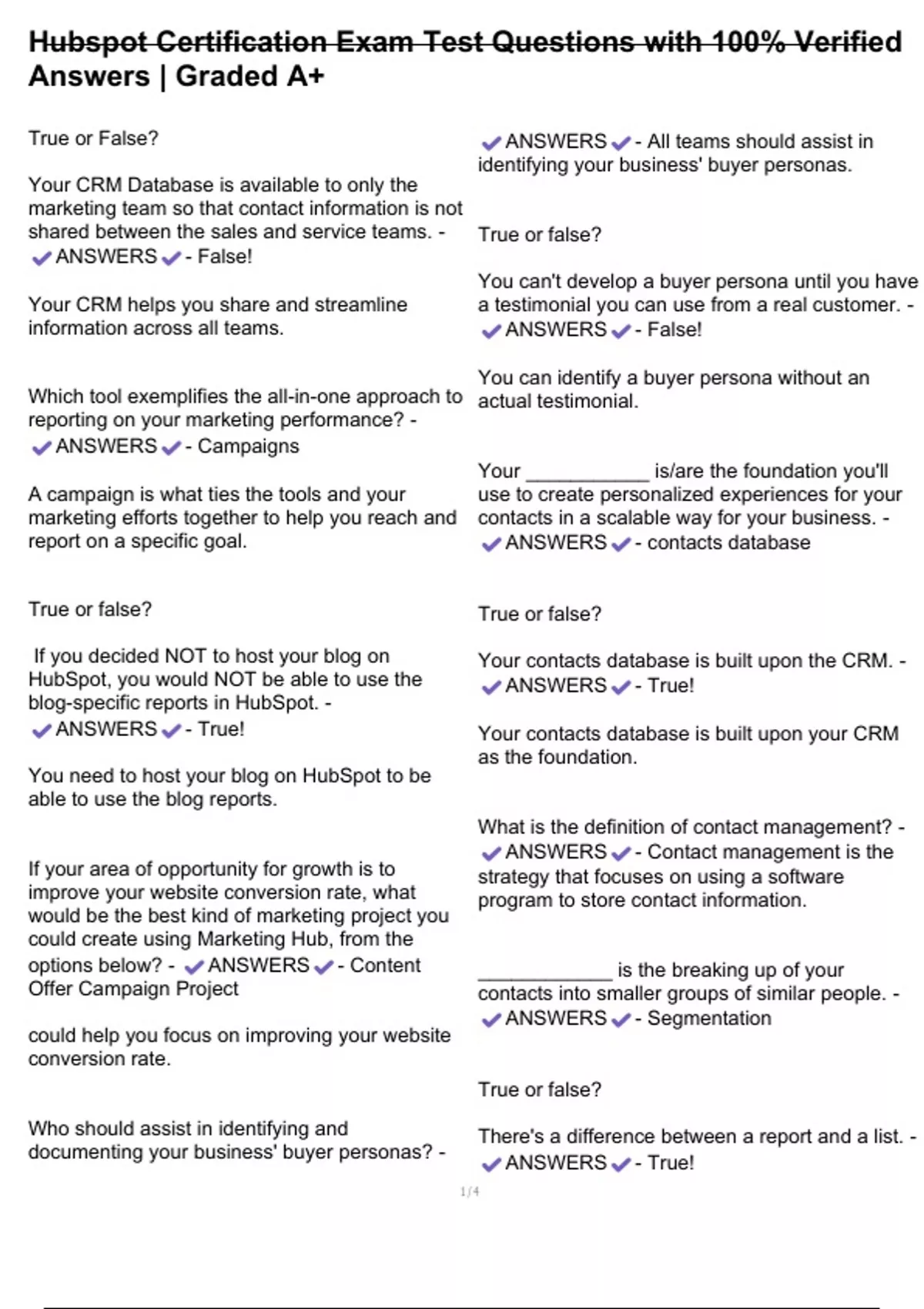 Hubspot Certification Exam Test Questions with 100% Verified Answers | Graded A+