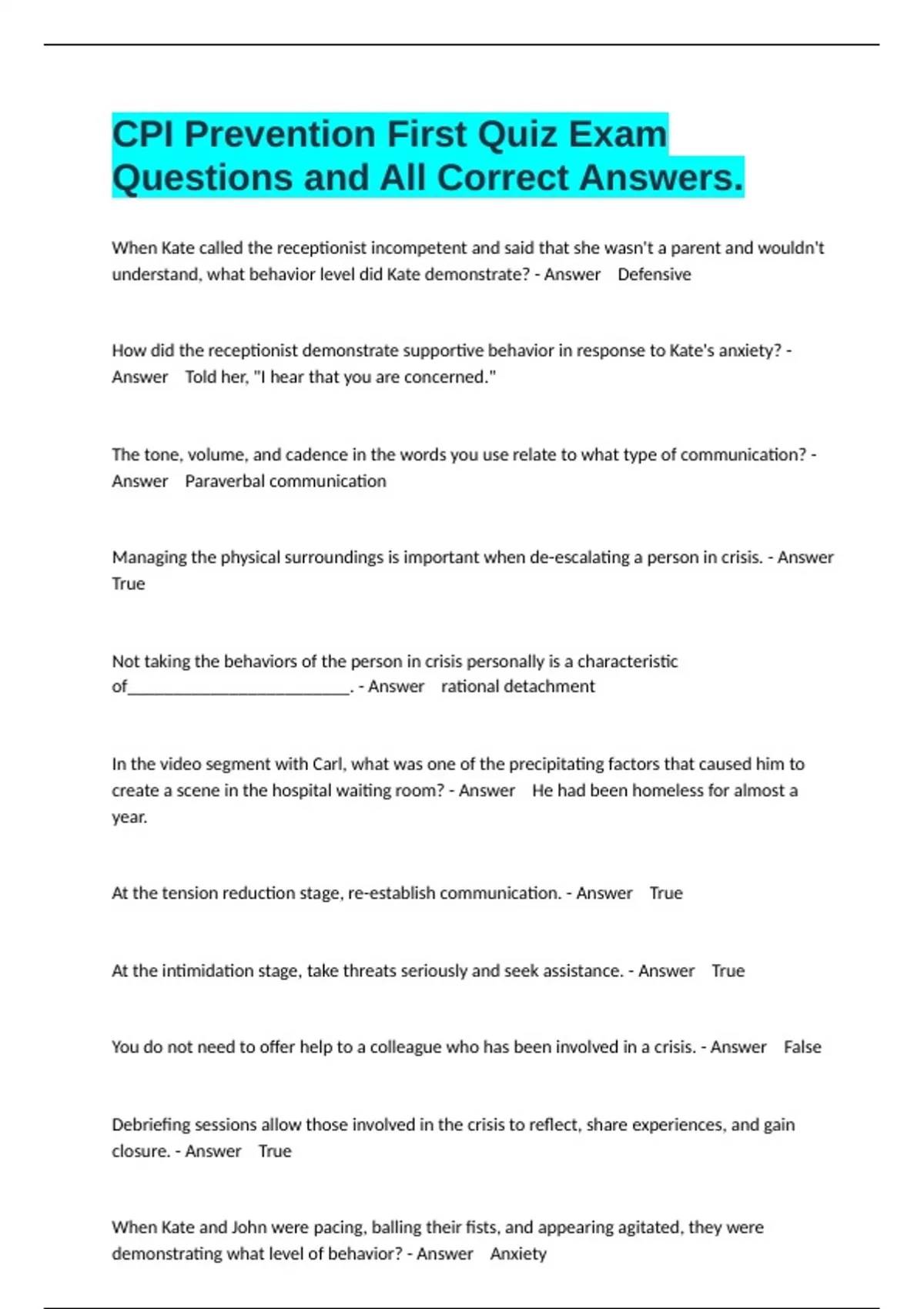 Questions and All Correct Answers.