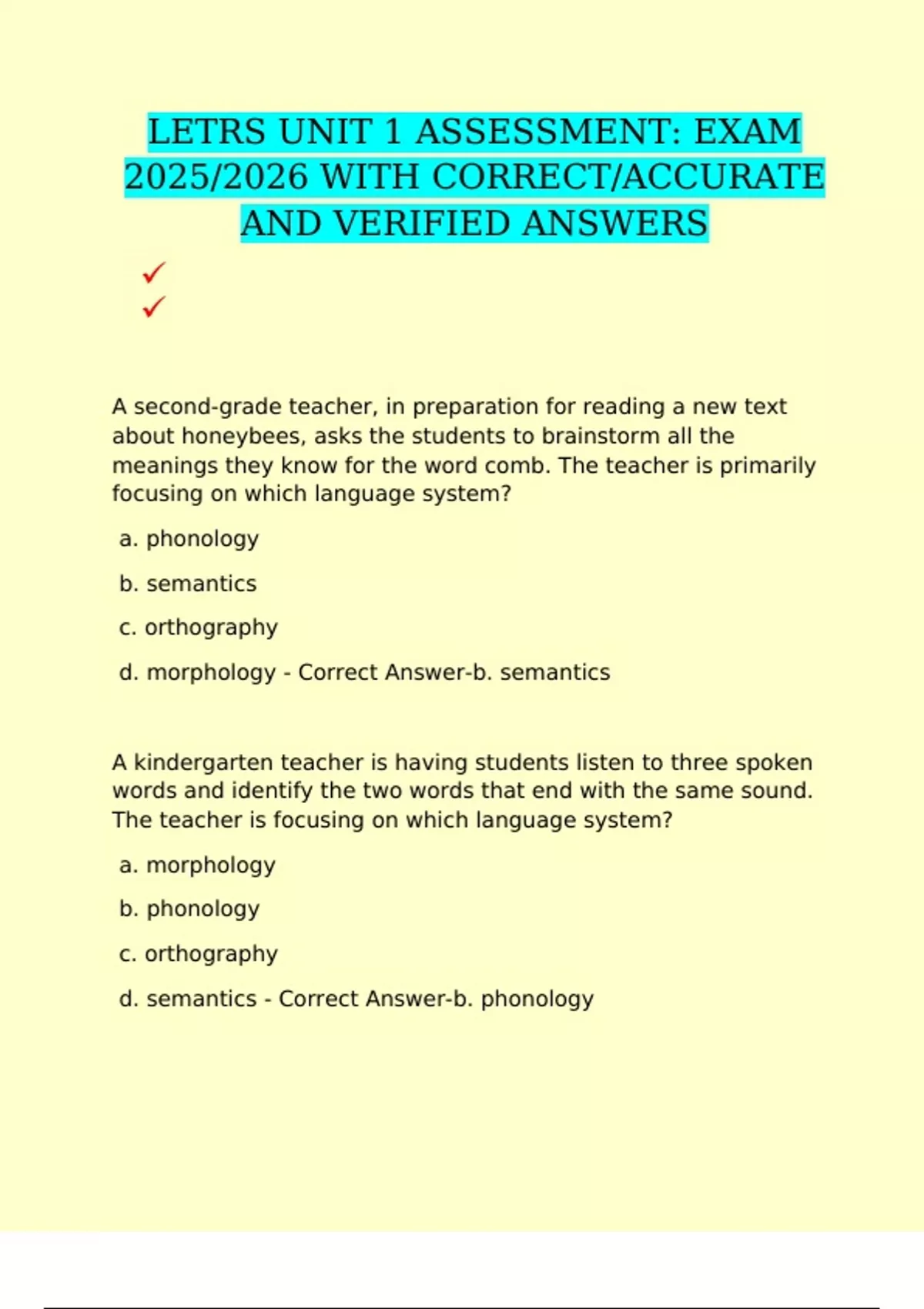d. semantics - Correct Answer-b. phonology