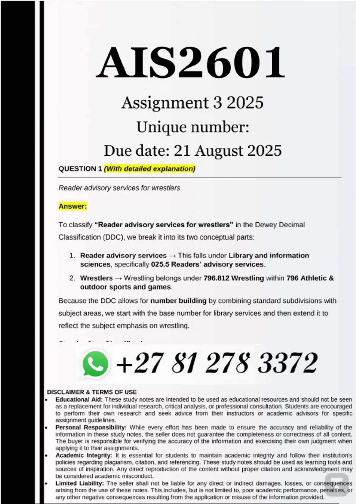 AIS2601 Assignment 3 (QUALITY ANSWERS) 2025