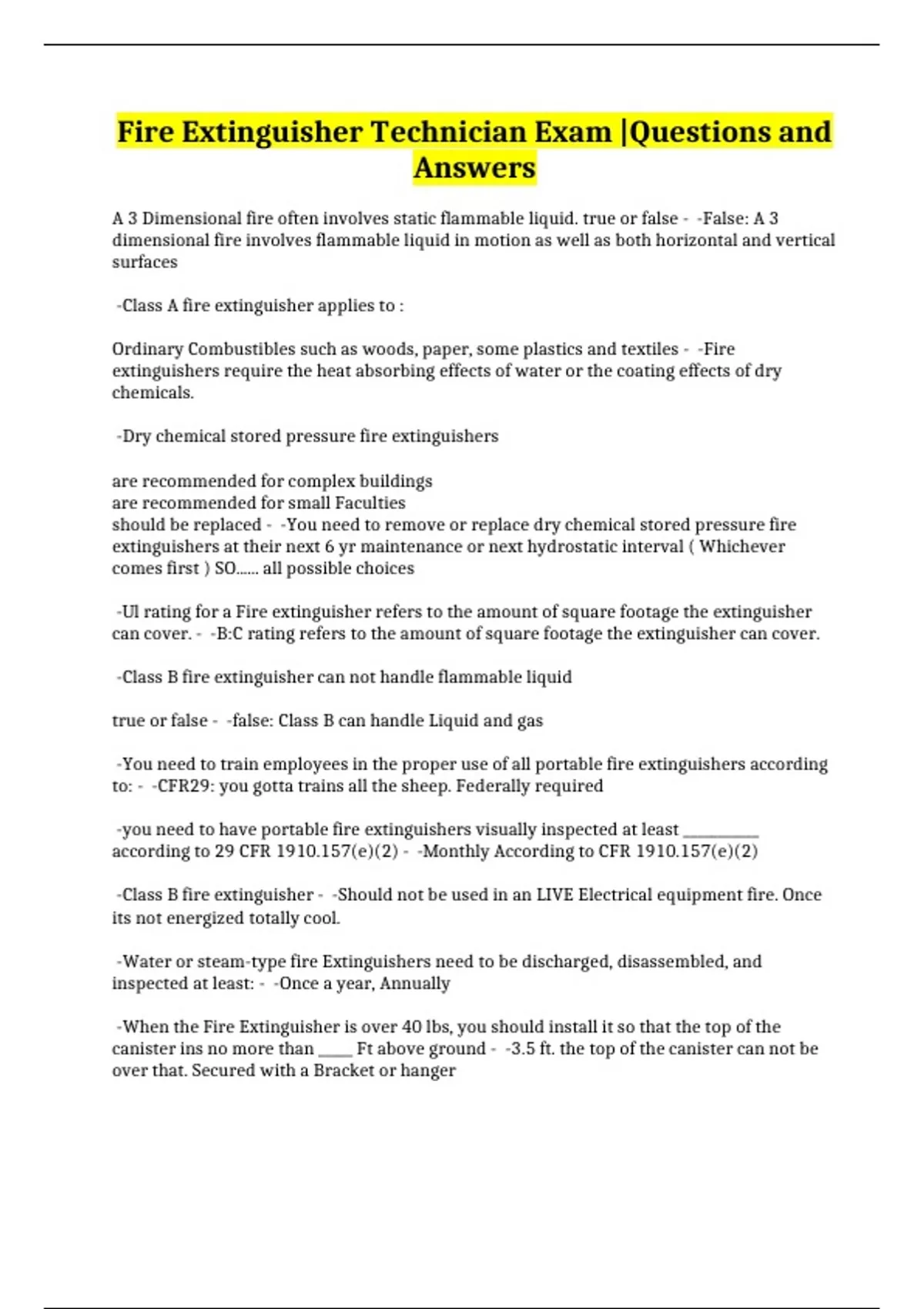 Fire Extinguisher Technician Exam |Questions and