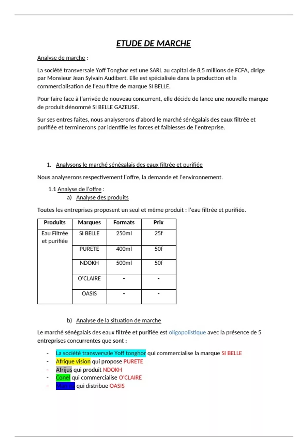 1. Analysons le marché sénégalais des eaux filtrée et purifiée