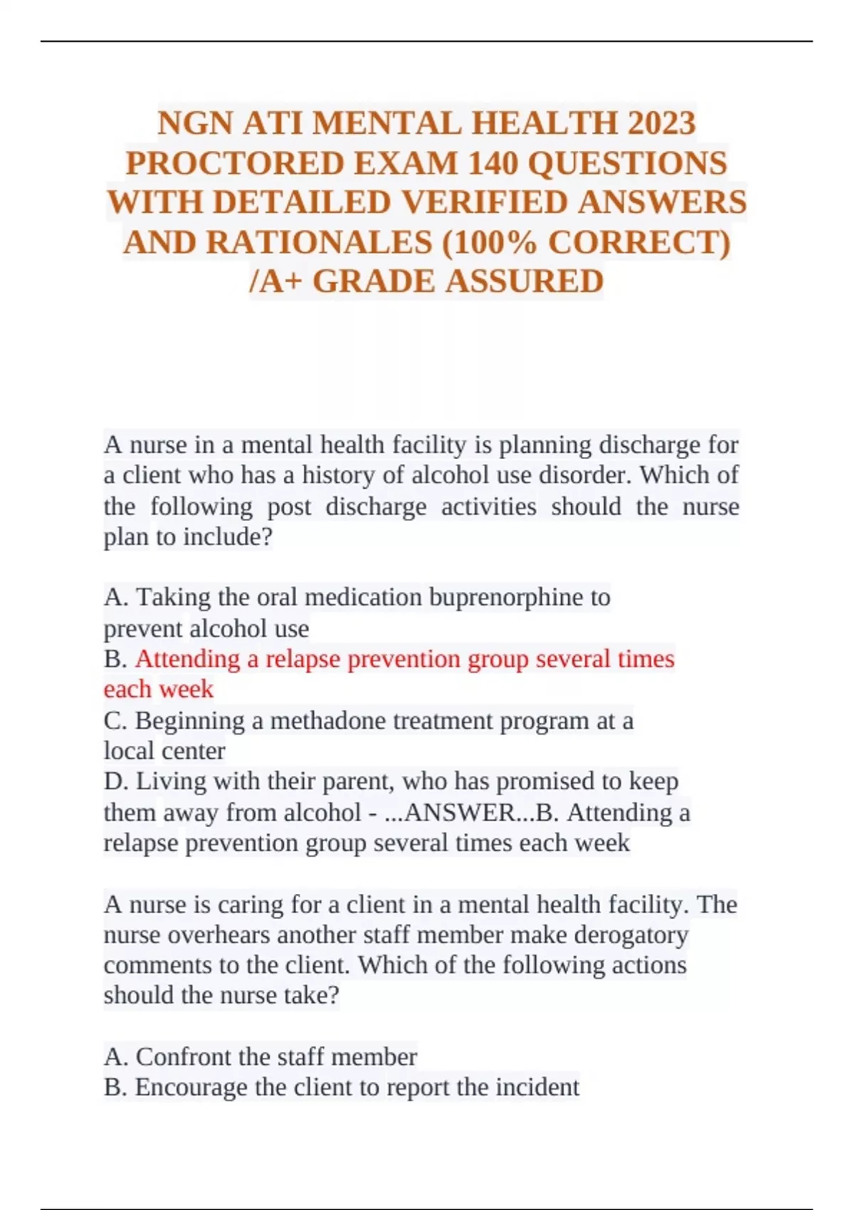 AND RATIONALES (100% CORRECT)