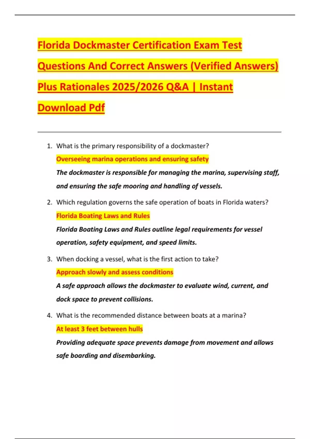 1. What is the primary responsibility of a dockmaster?