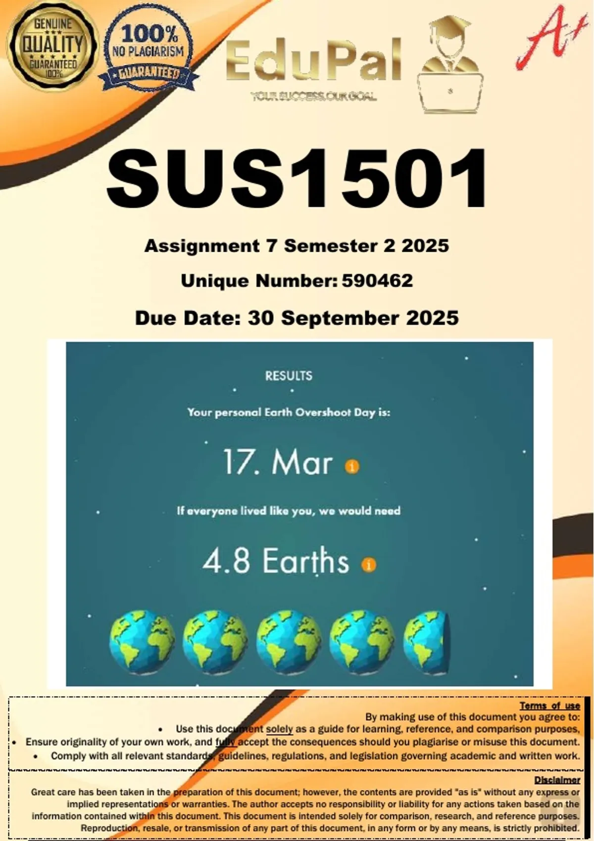Ensure originality of your own work, and fully accept the consequences should you plagiarise or misuse this document.