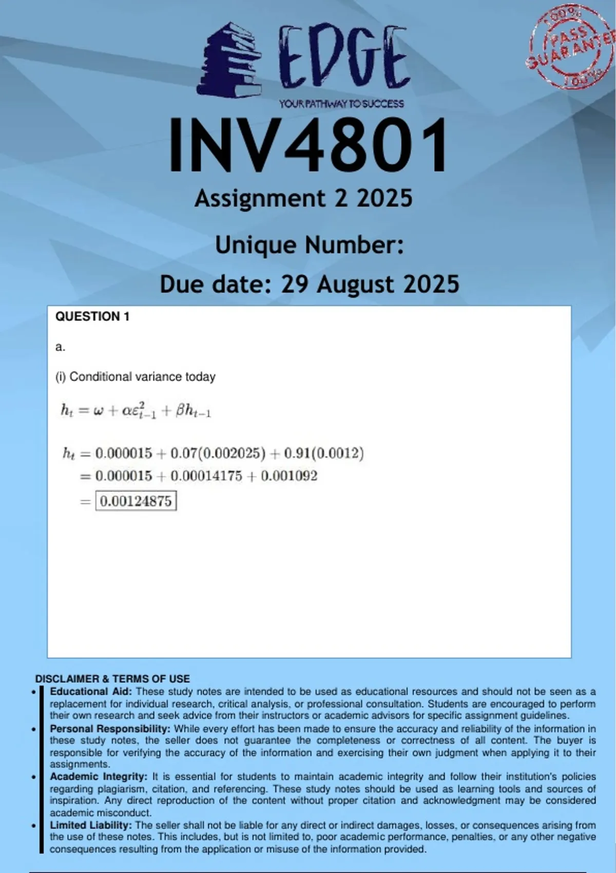 Due date: 29 August 2025