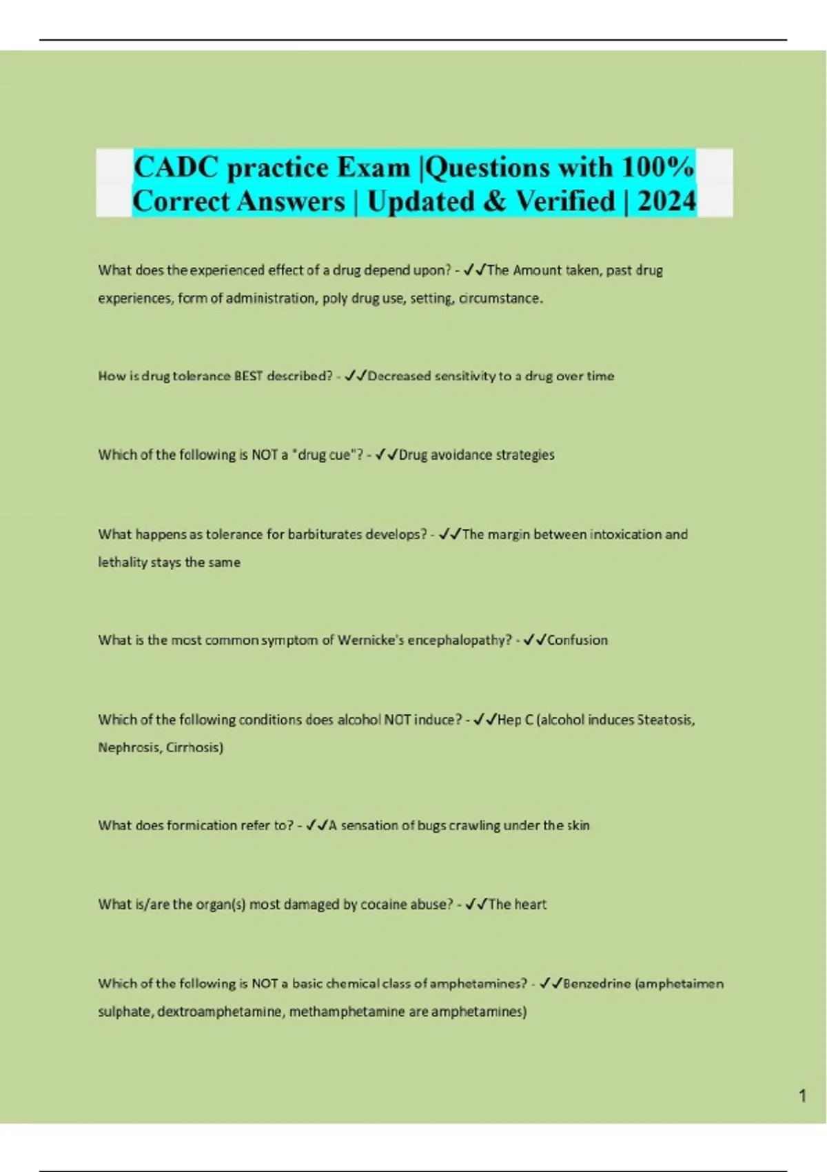 CADC practice Exam |Questions with 100% Correct Answers | Updated & Verified | 2024