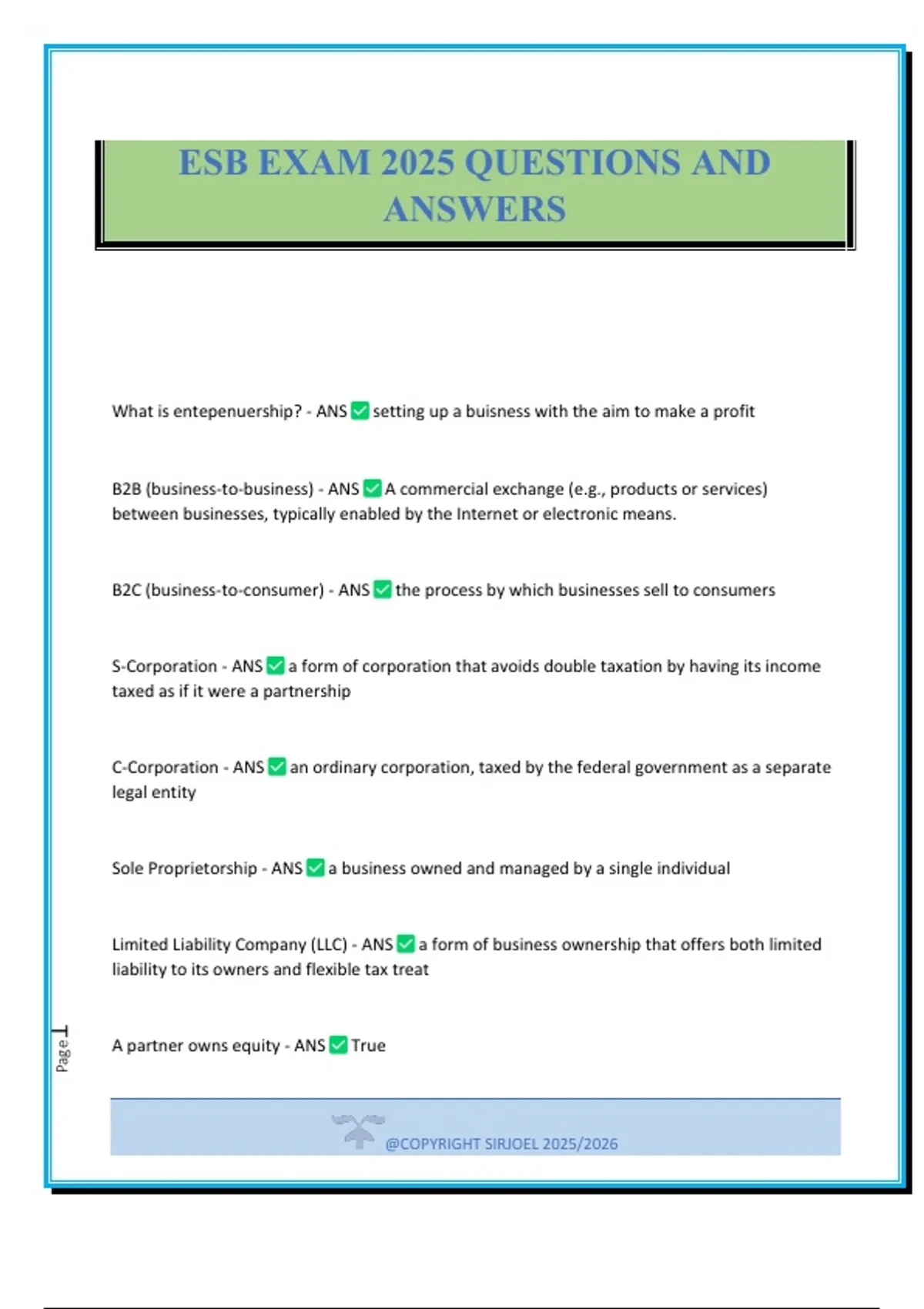 ESB EXAM 2025 QUESTIONS AND ANSWERS