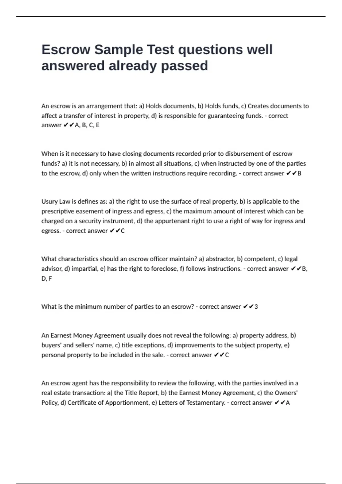 to the escrow, d) only when the written instructions require recording. - correct answer ✔✔B