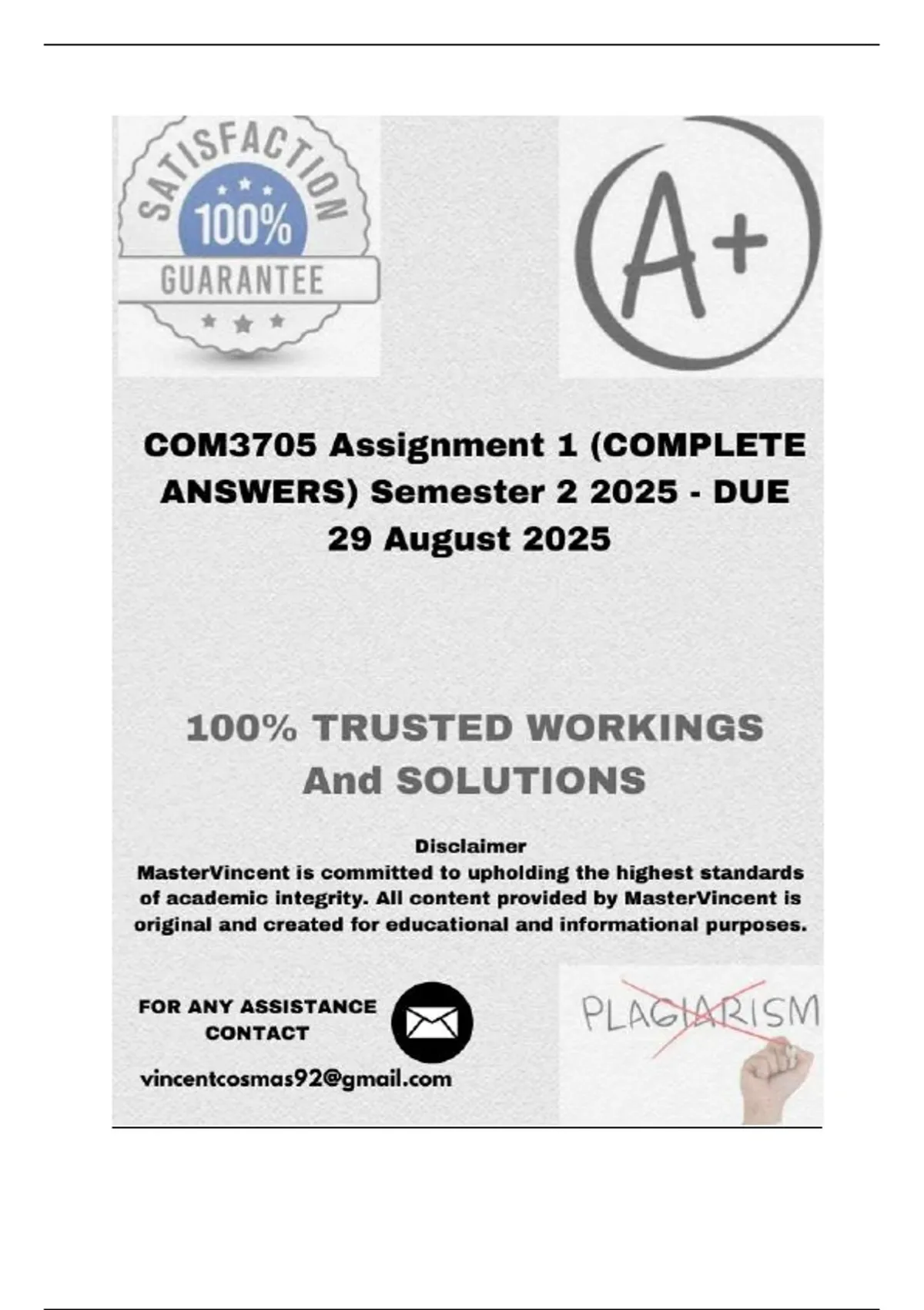 COM3705 Assignment 1 (COMPLETE ANSWERS) Semester 2 2025 - DUE 29 August 2025 ; 100% correct solutions and explanations.