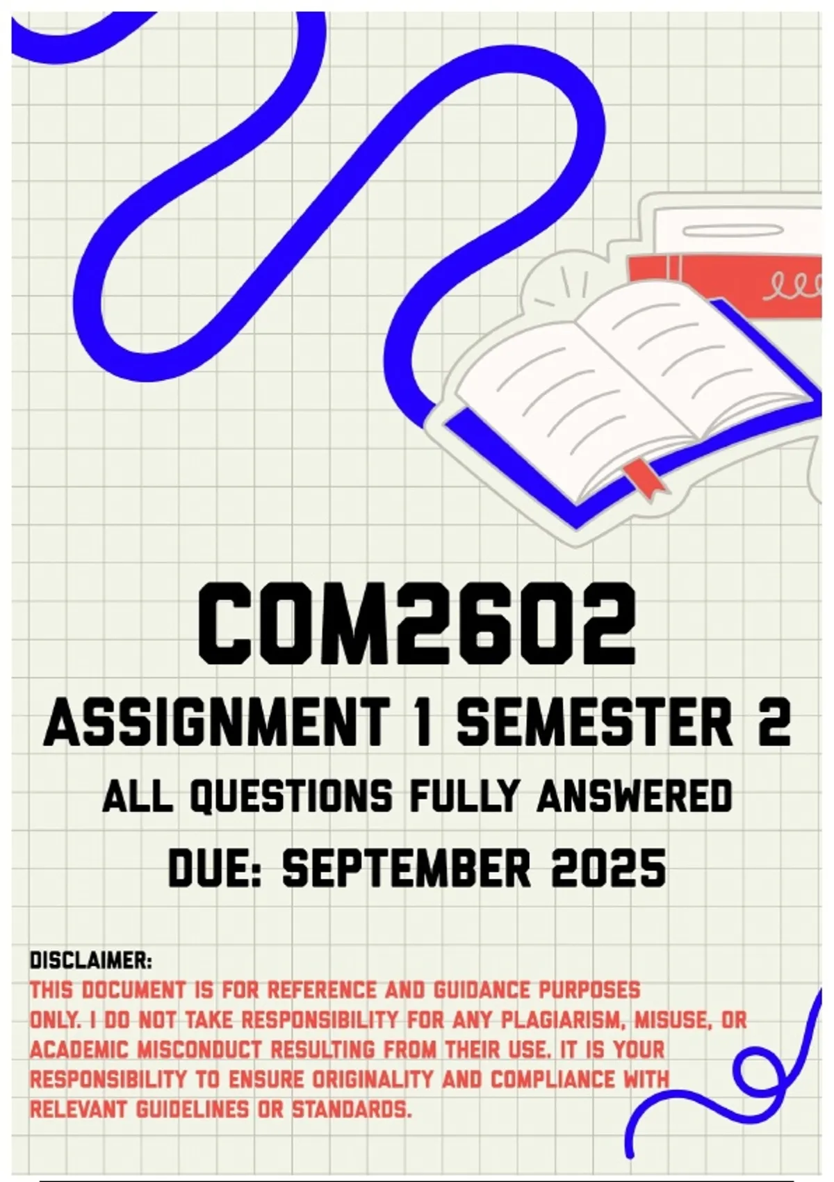 COM2602 Assignment 1 Semester 2 Memo | Due September 2025. All questions fully answered. QUESTION 1: COMMUNICATION AND THE ORGANISATION 1.1 Communication fields and disciplines are various and interconnected. In some cases, they may overlap. These fields explore how individuals, groups, and organisations interact and exchange information. Identify and discuss six (6) communication fields (Barker & Angelopulo, 2013). (30) (30 marks)