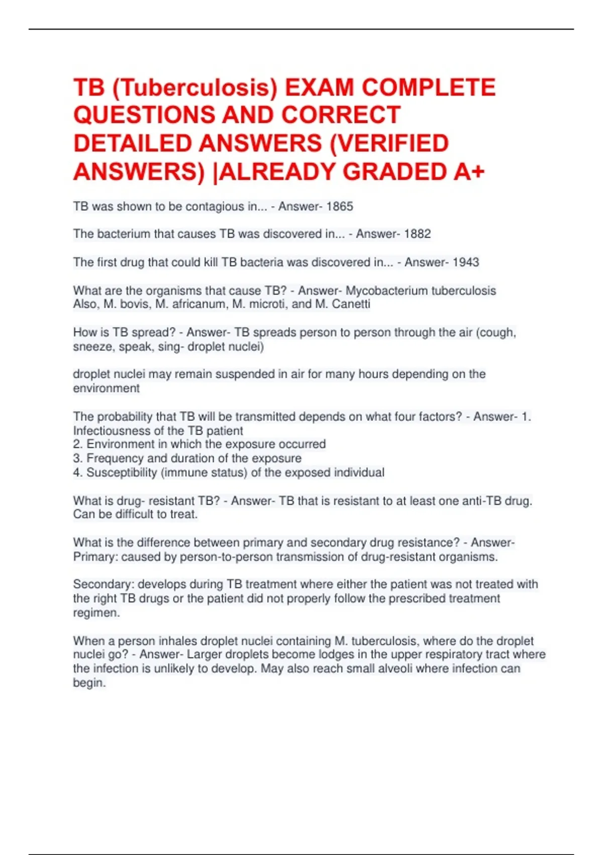 What is drug- resistant TB? - Answer- TB that is resistant to at least one anti-TB drug.