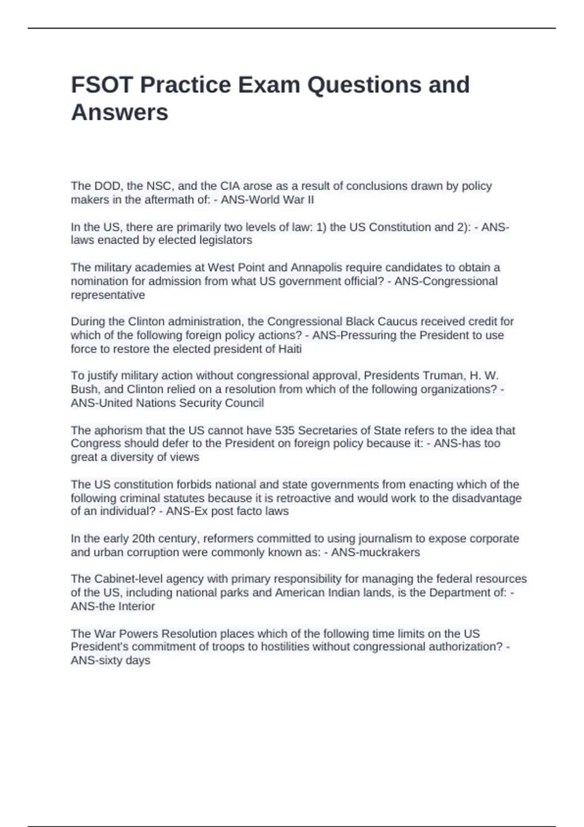 FSOT Practice Exam Questions and