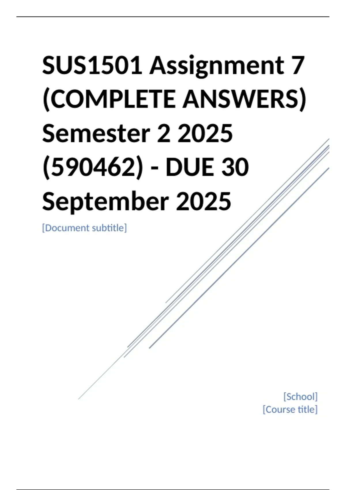 SUS1501 Assignment 7 (COMPLETE ANSWERS) Semester 2 2025 (590462) - DUE 30 September 2025
