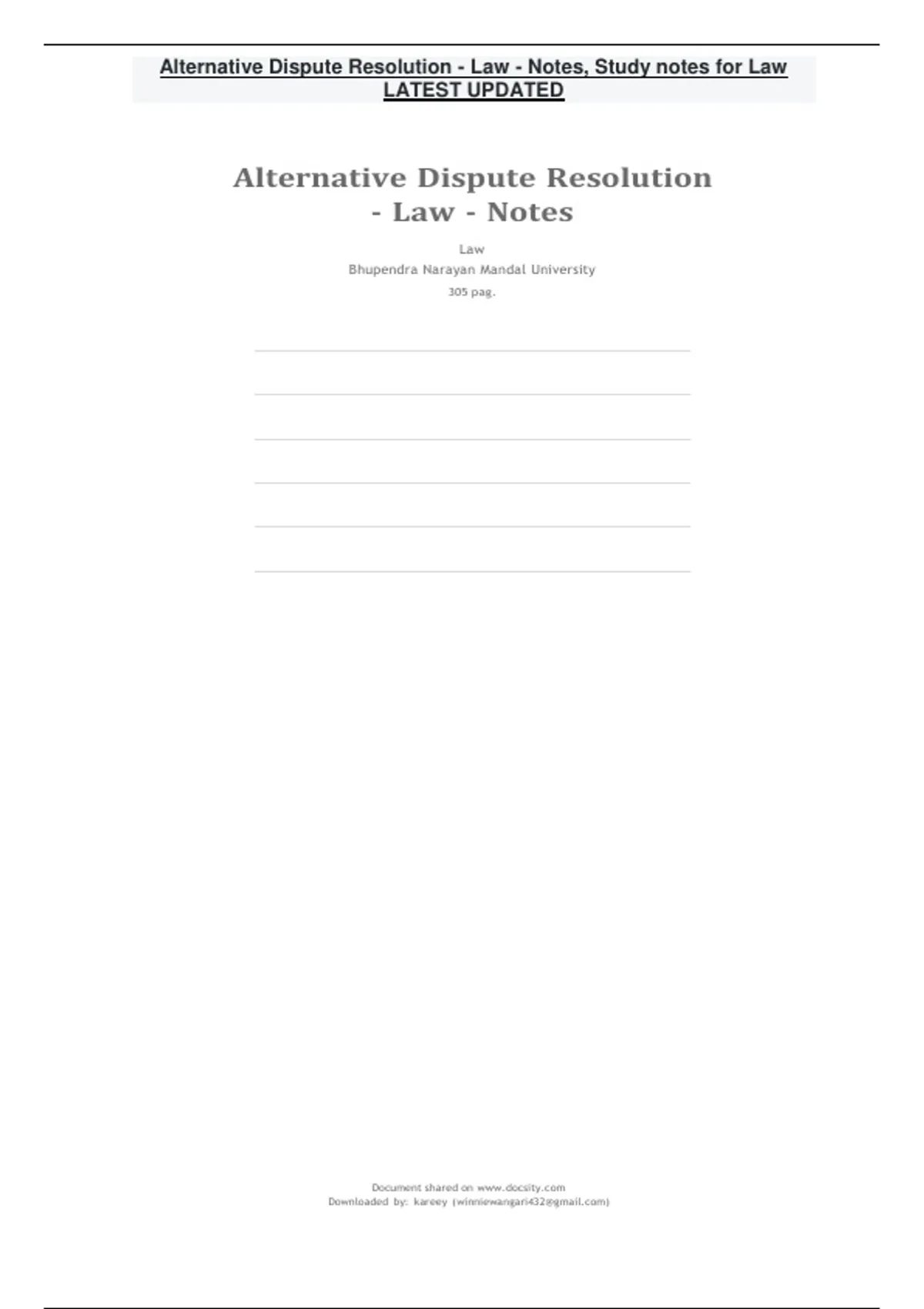 ,Alternative Dispute Resolution - Law - Notes, Study notes for Law LATEST