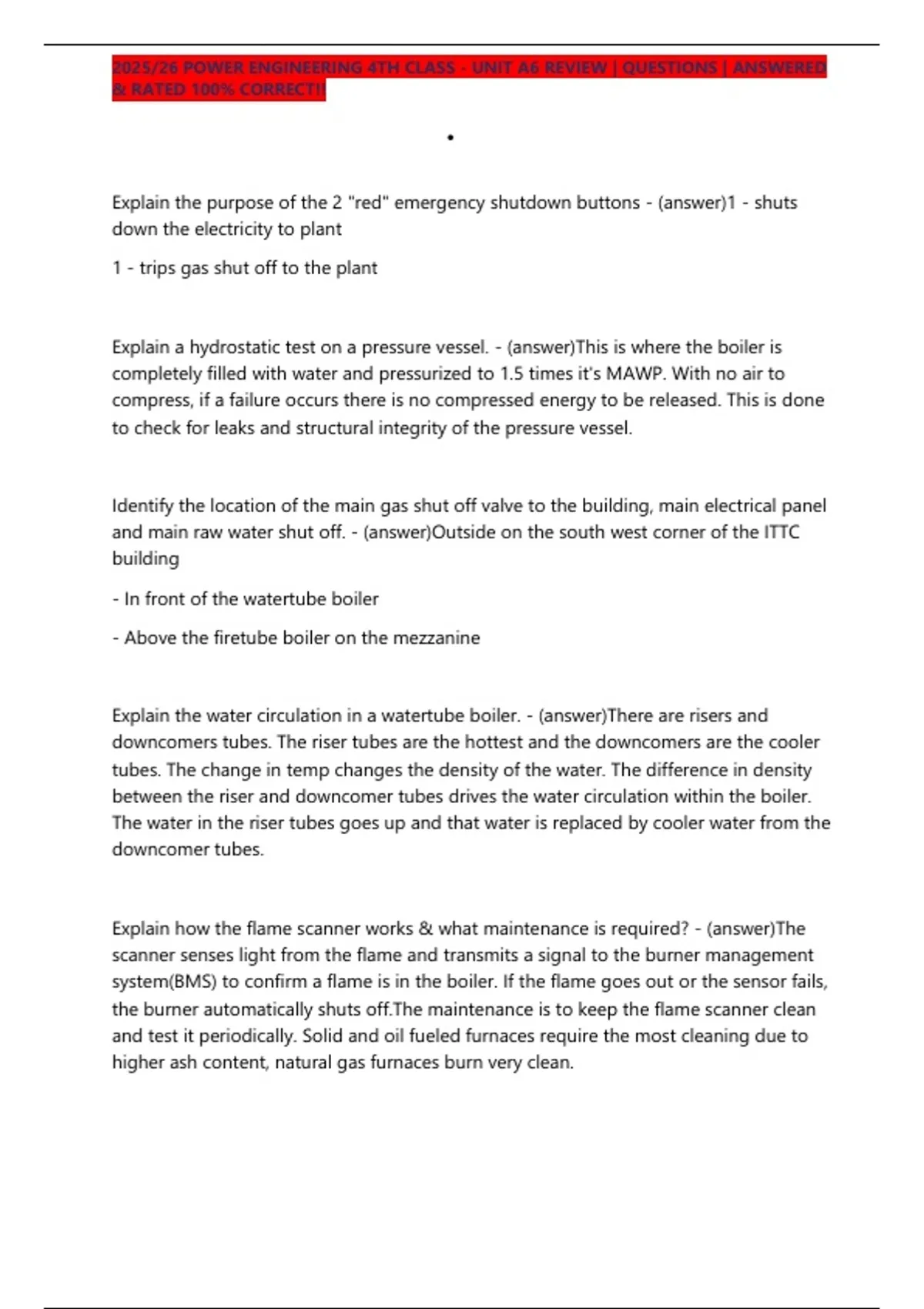 2025/26 POWER ENGINEERING 4TH CLASS - UNIT A6 REVIEW | 100 QUESTIONS | ANSWERED & RATED 100% CORRECT!!