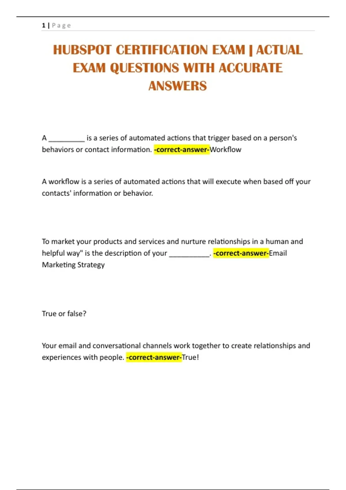 HUBSPOT CERTIFICATION EXAM | ACTUAL EXAM QUESTIONS WITH ACCURATE ANSWERS