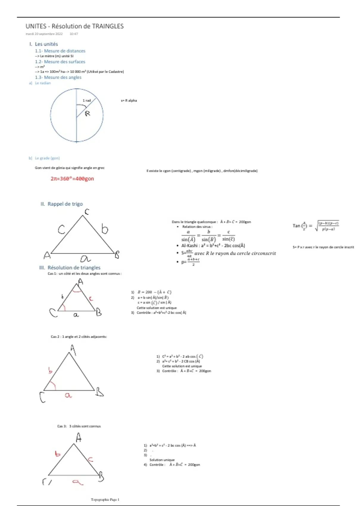 Rappelle sur les unités, et résolution de triangles grâce à la trigonométrie