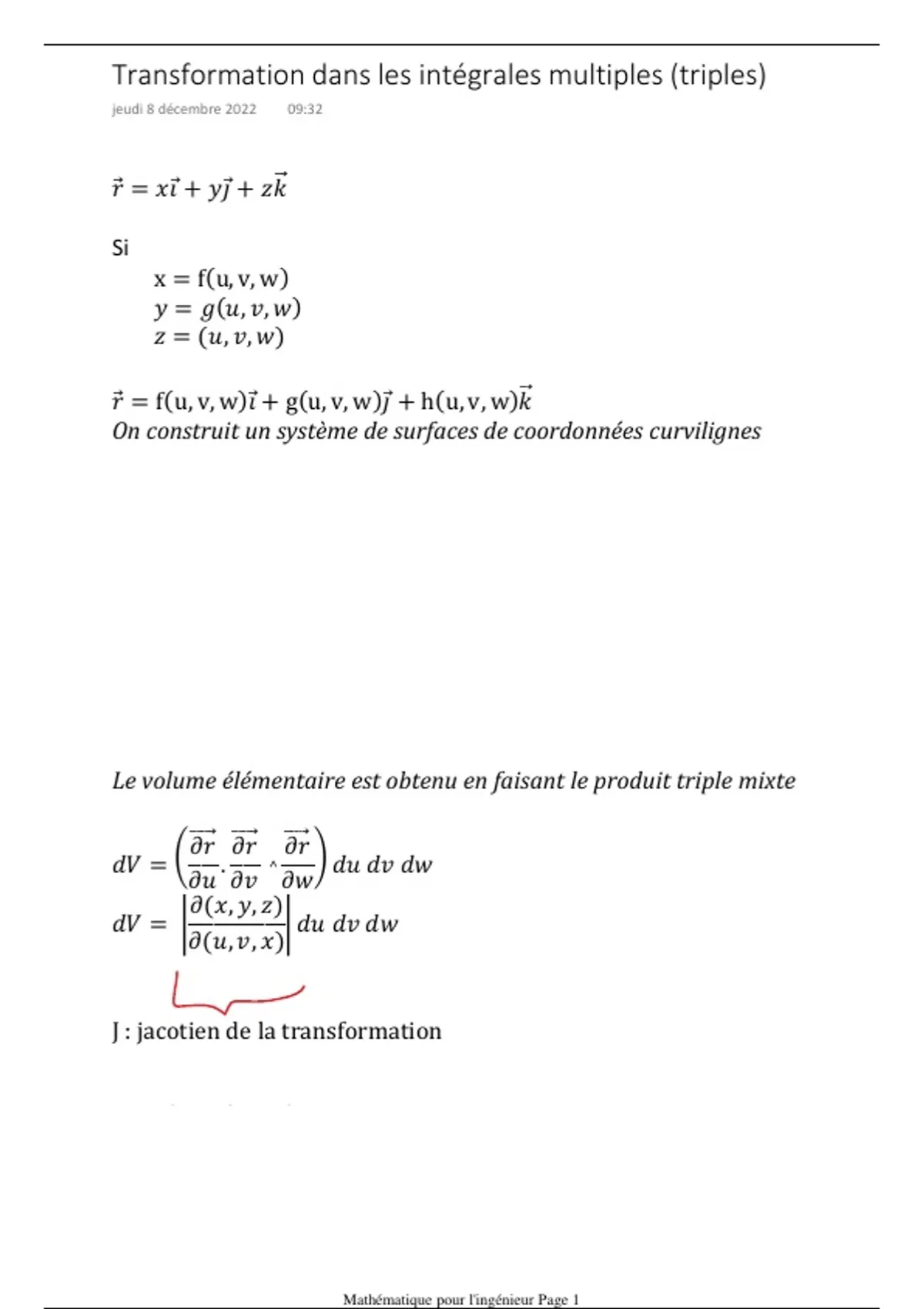 Le volume élémentaire est obtenu en faisant le produit triple mixte