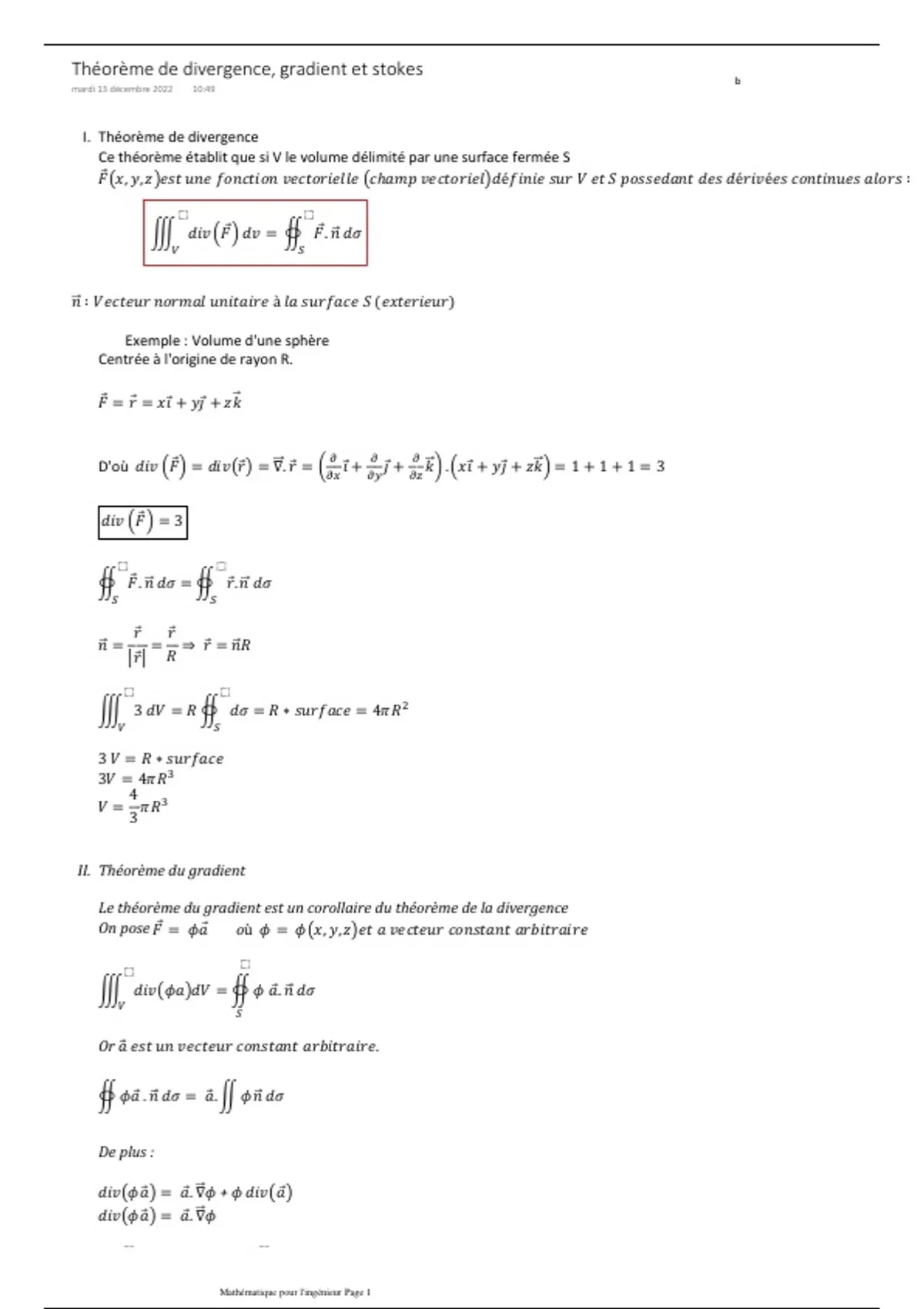 Théorème de divergence, gradient et stokes b