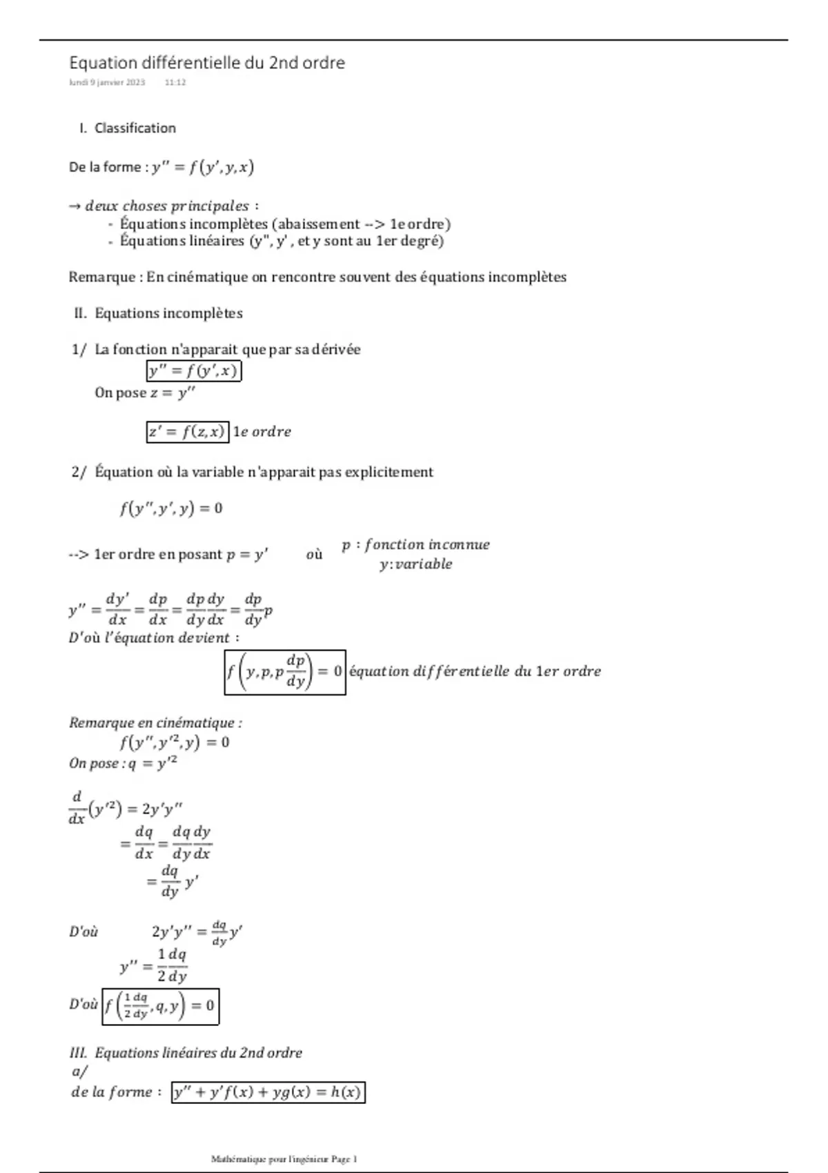 Remarque : En cinématique on rencontre souvent des équations incomplètes