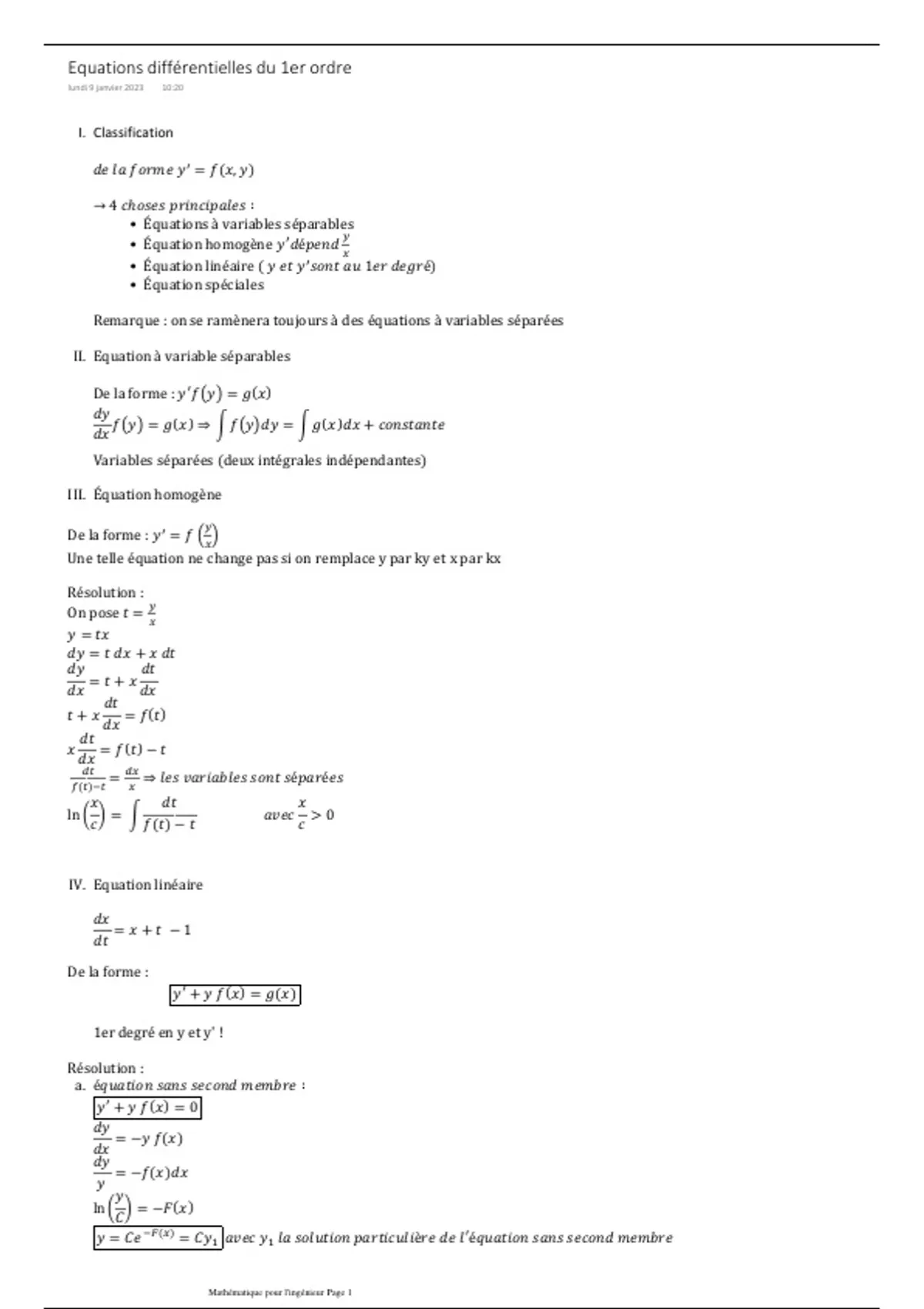 Équations à variables séparables • Équation homogène • Équation linéaire • Équation spéciales